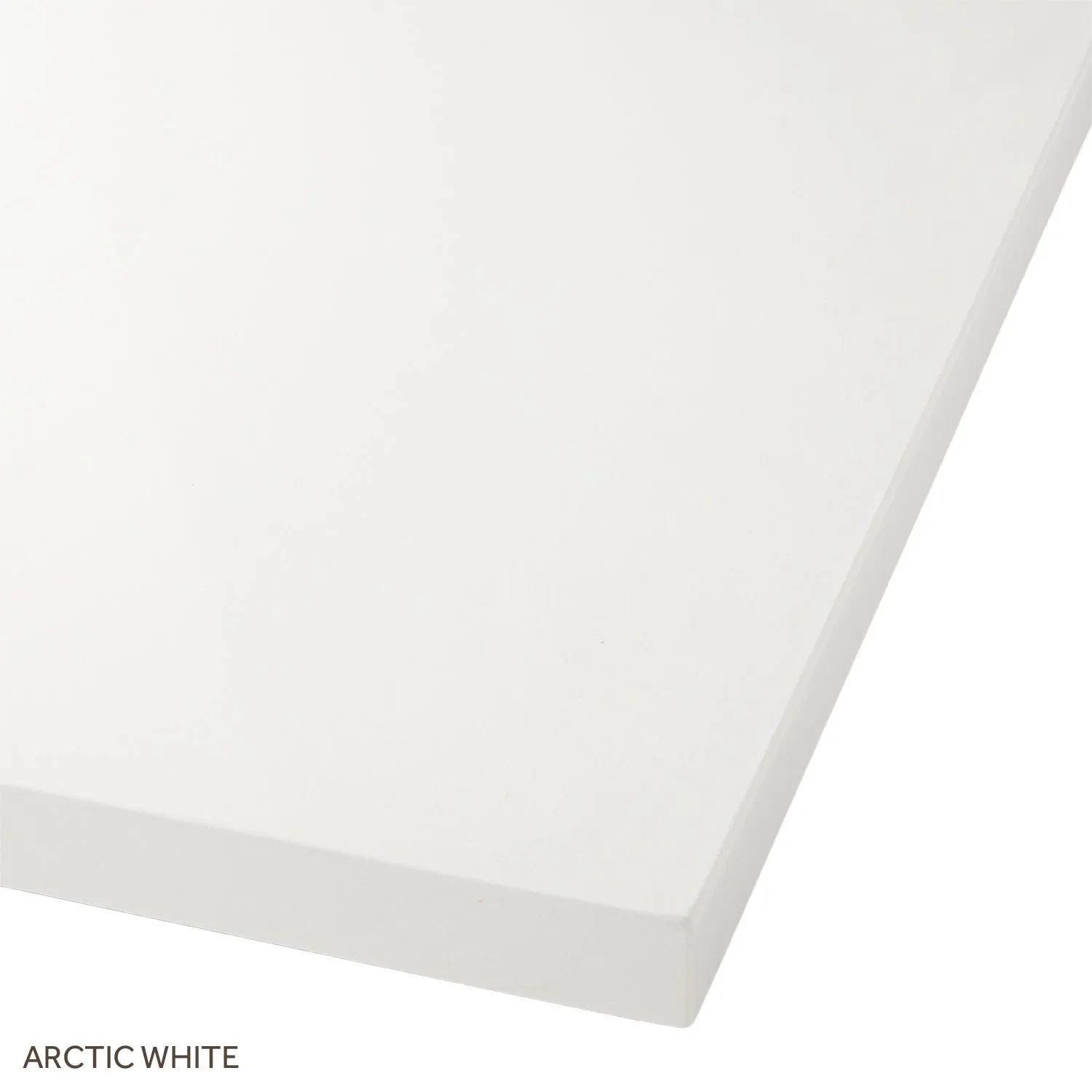 - Includes a matching backsplash and a white porcelain sink.