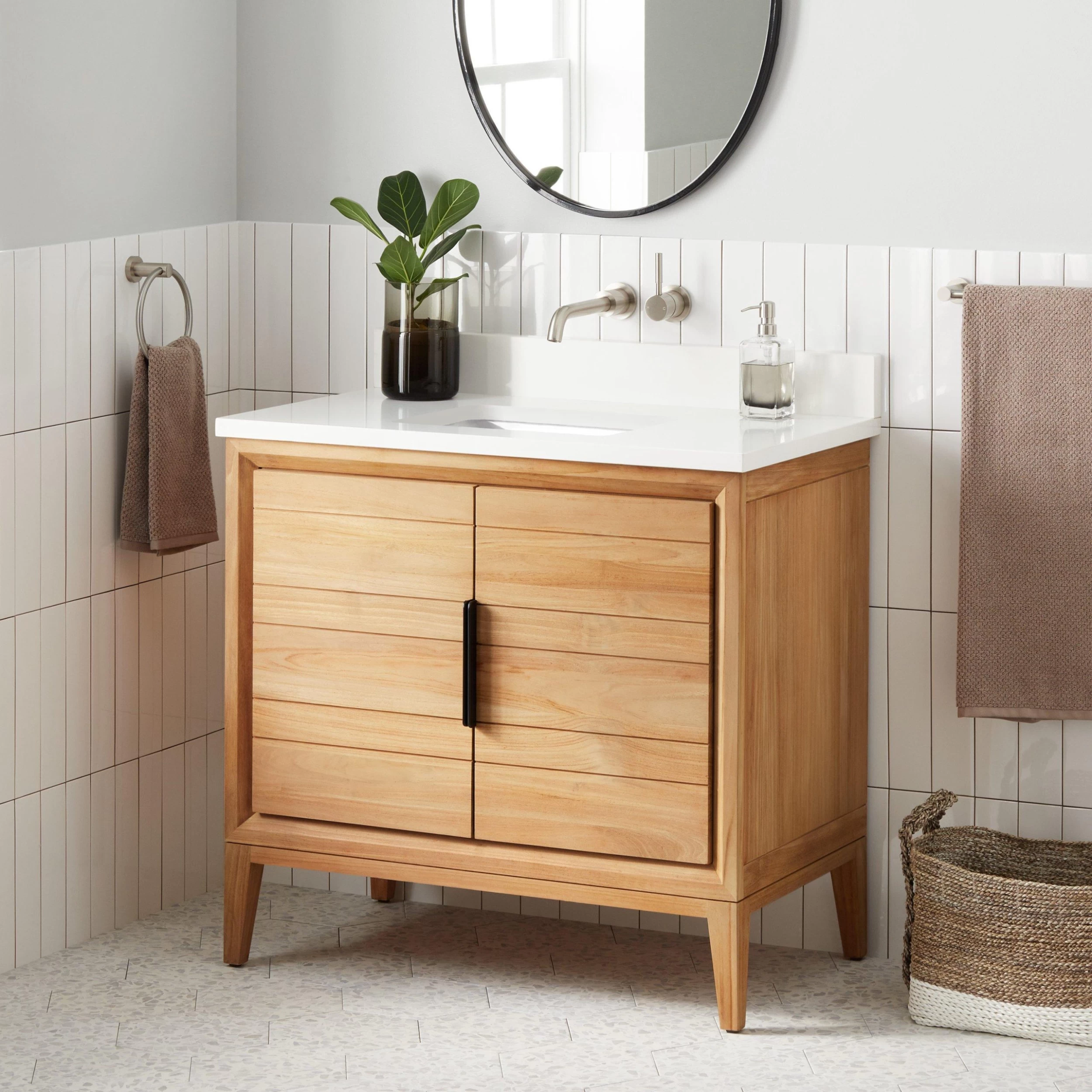 - Includes a matching backsplash and a white porcelain sink.