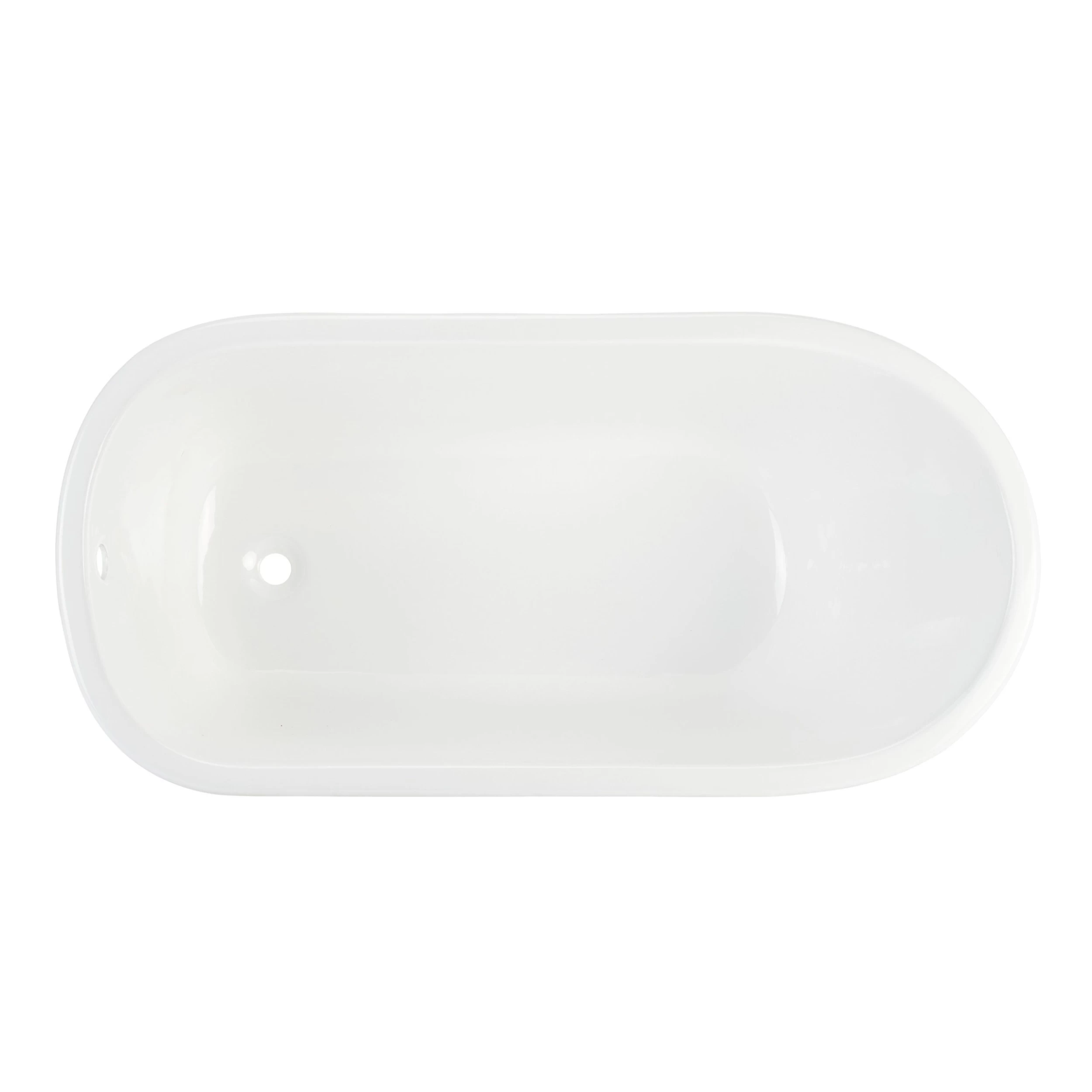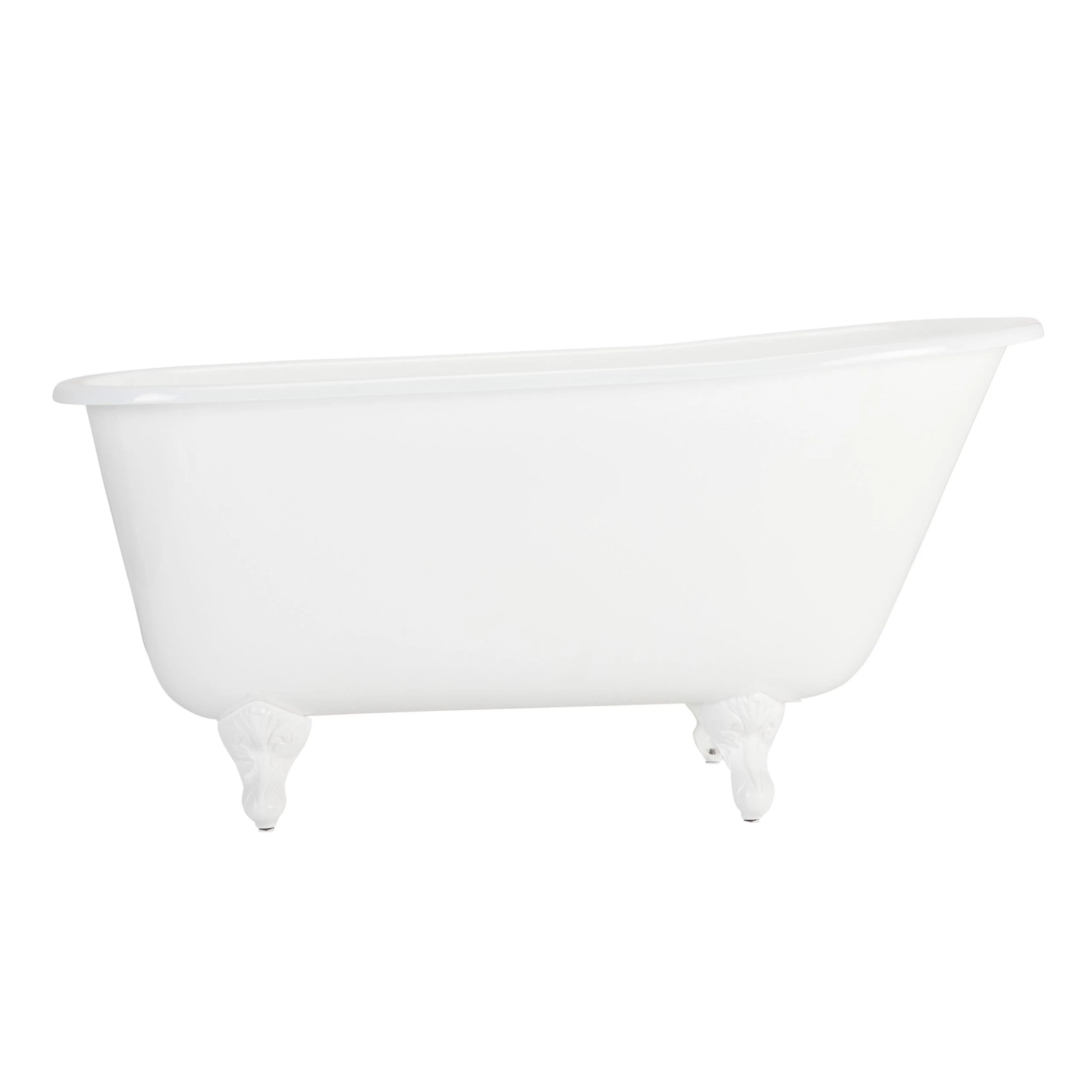 The 53″ Carine Cast Iron Swedish Slipper Clawfoot Tub features a unique, low grade incline and a set of ball-and-claw feet. The compact size of this freestanding tub makes it a perfect replacement for a standard drop-in tub.
