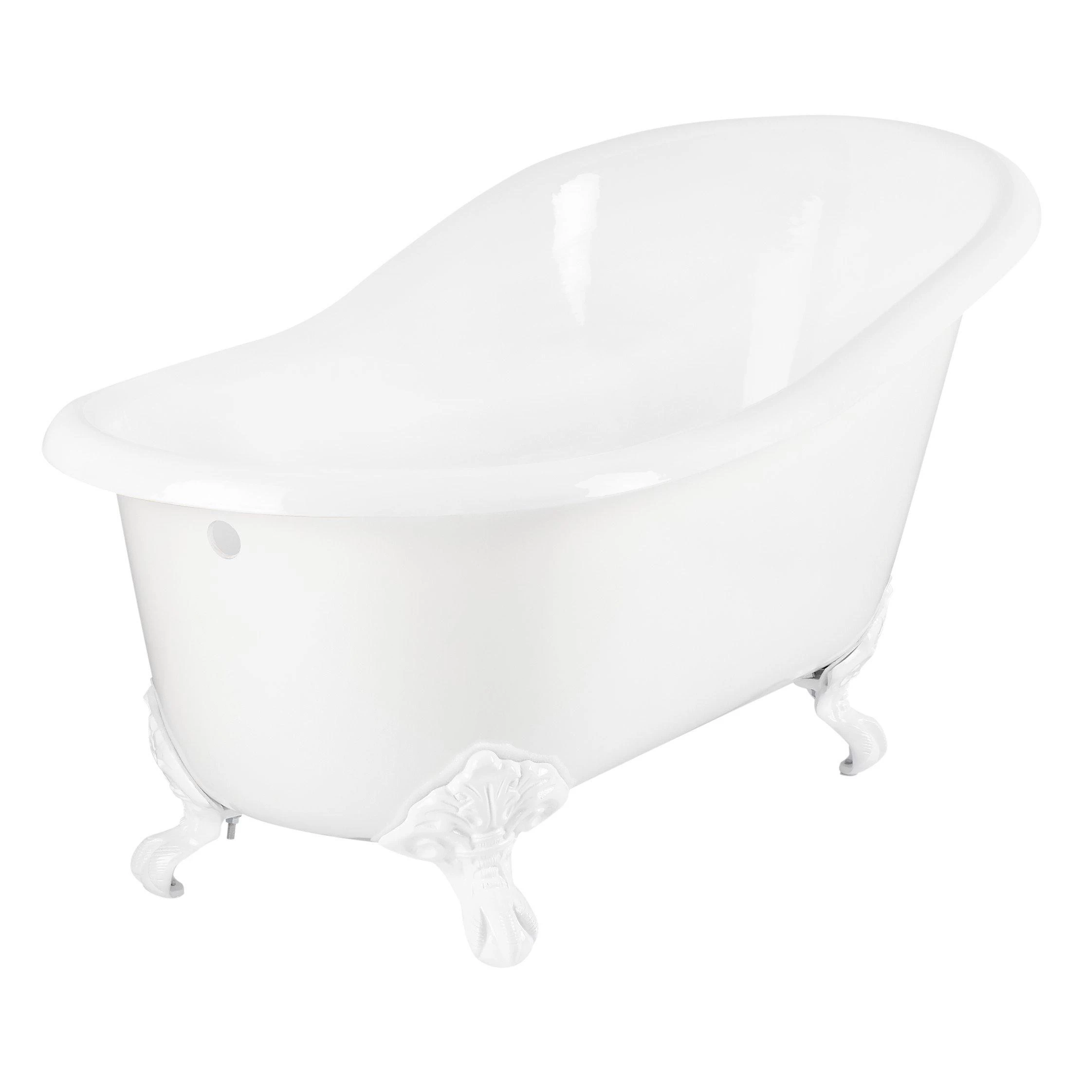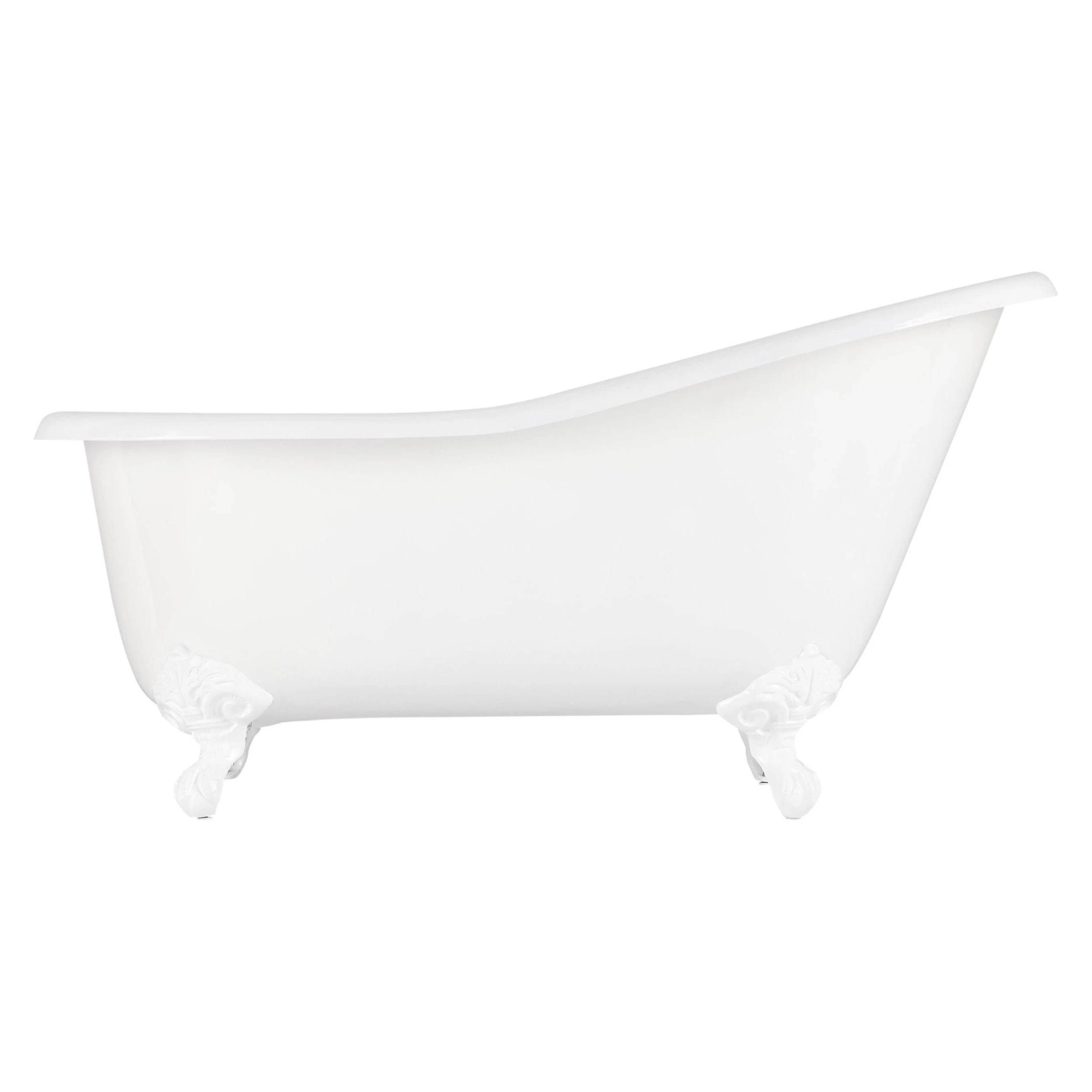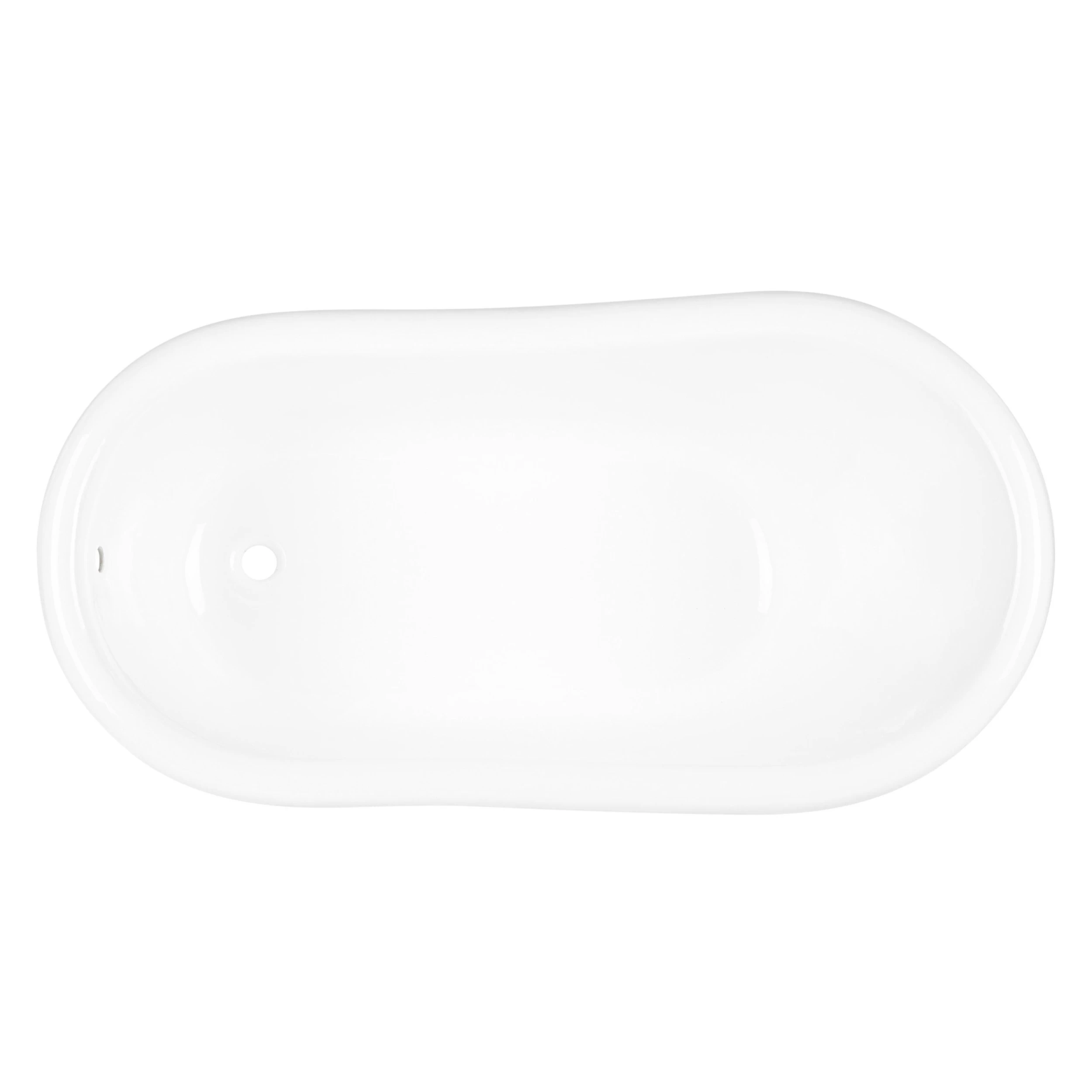 This 57″ classic slipper clawfoot tub with continuous rolled rim features imperial feet and is made specifically to be placed in a built-in tub space.
