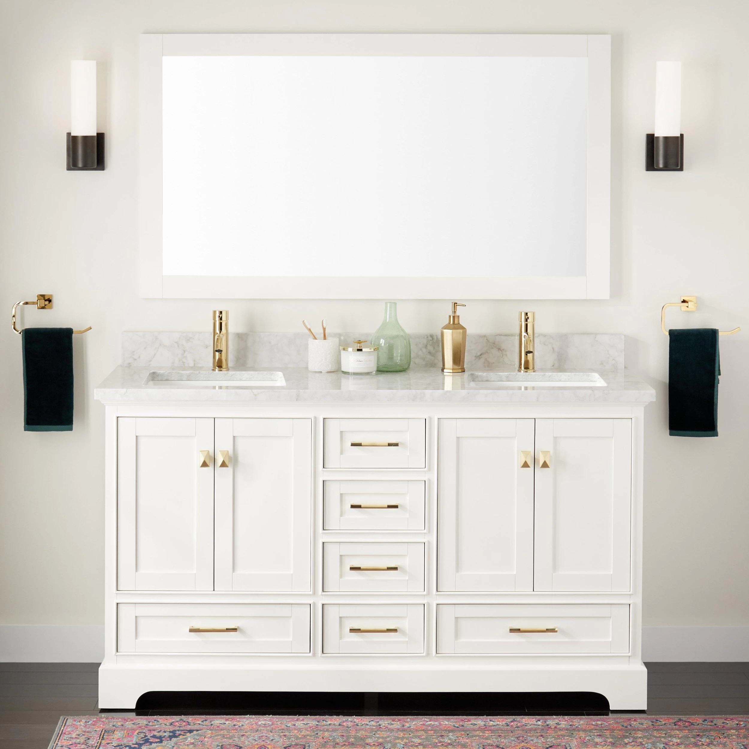 - Includes a matching backsplash and a pair of white porcelain sink.