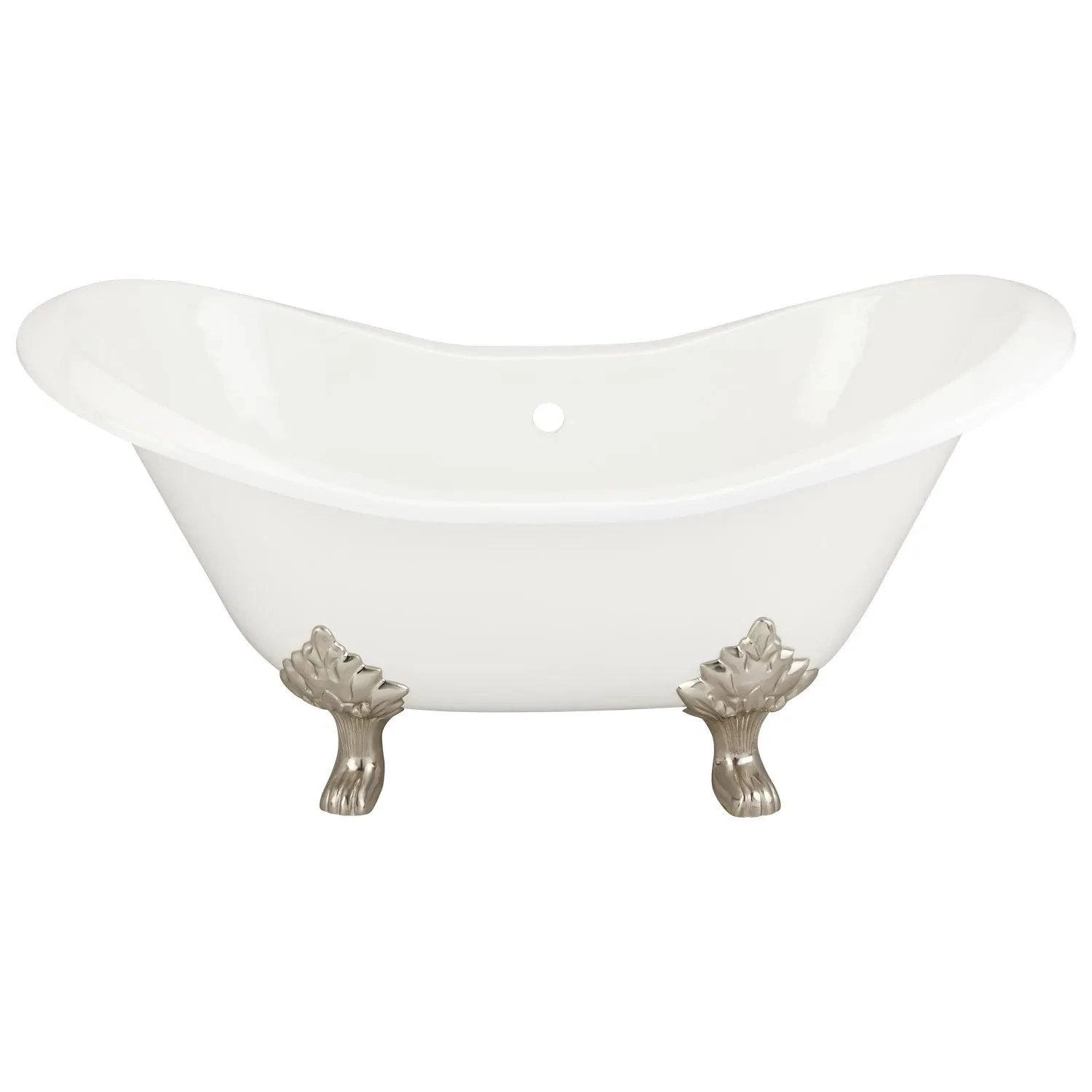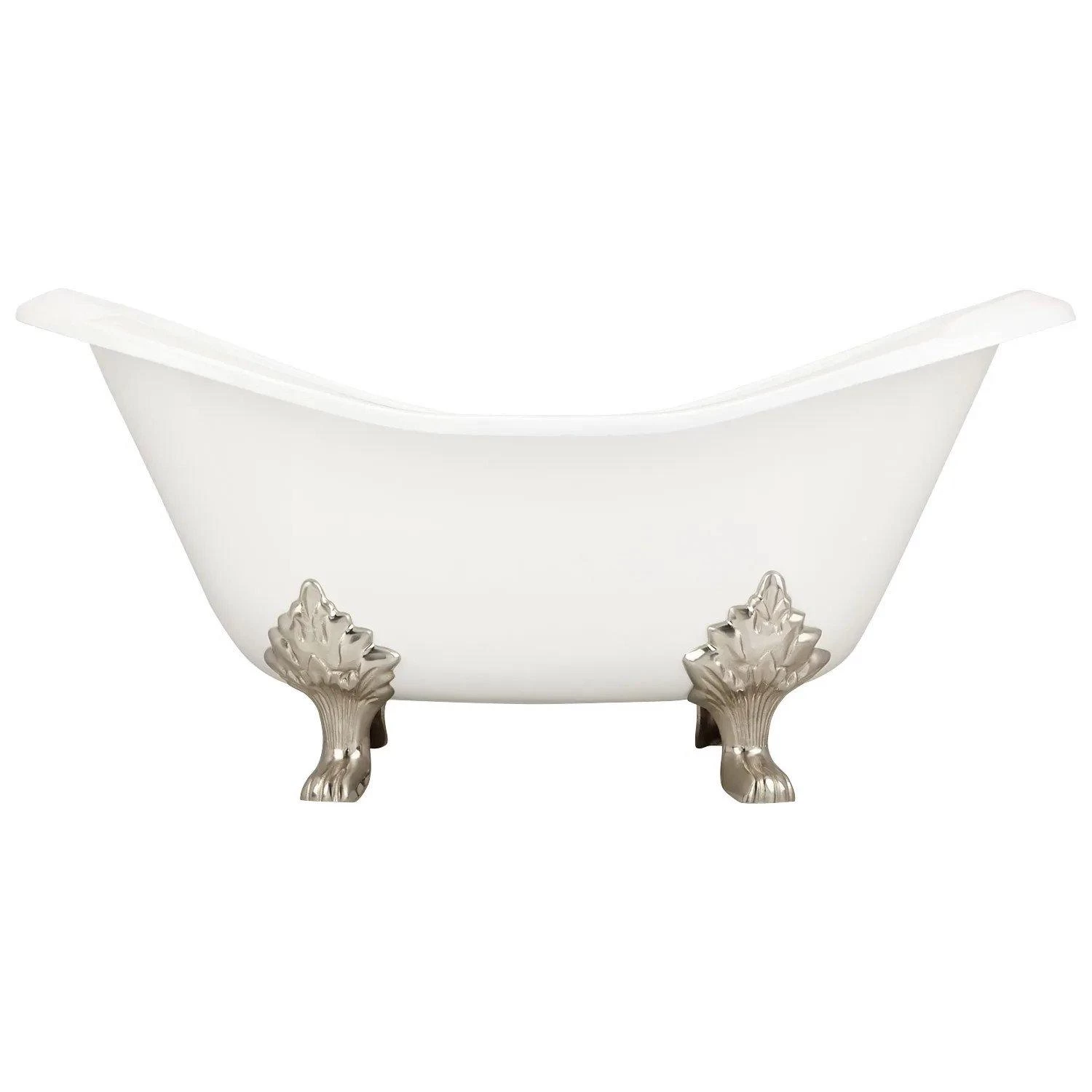 The sumptuous Bellbrook Cast Iron Double-Slipper Tub features a dramatic shape and detailed lion paw feet that are crafted of solid brass for lasting beauty. Recline at either end for a tranquil experience each time you bathe.