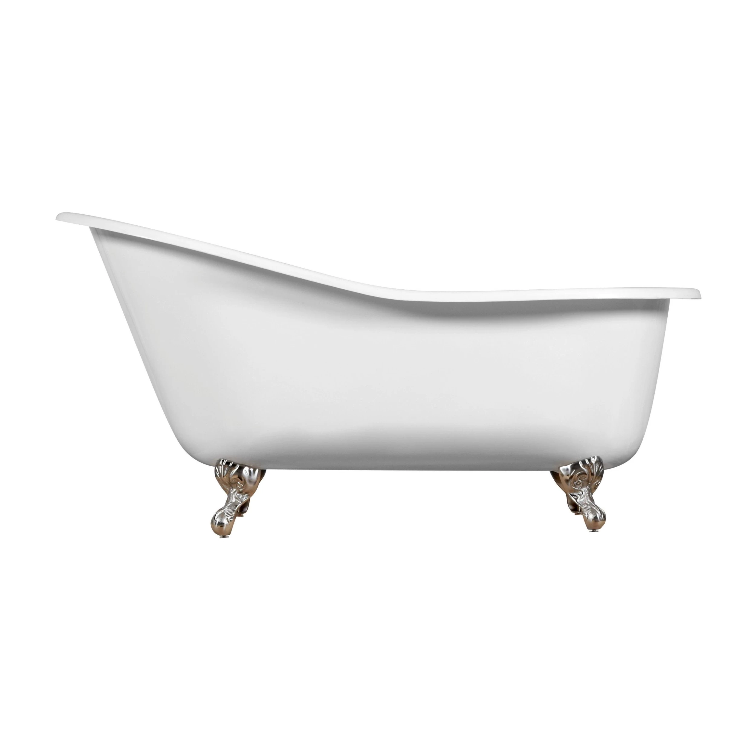 This elegant Callaway Cast Iron Slipper Tub features an extended, gently sloped backrest and sits on ball-and-claw feet. Design your dream bath around this gorgeous freestanding tub.
