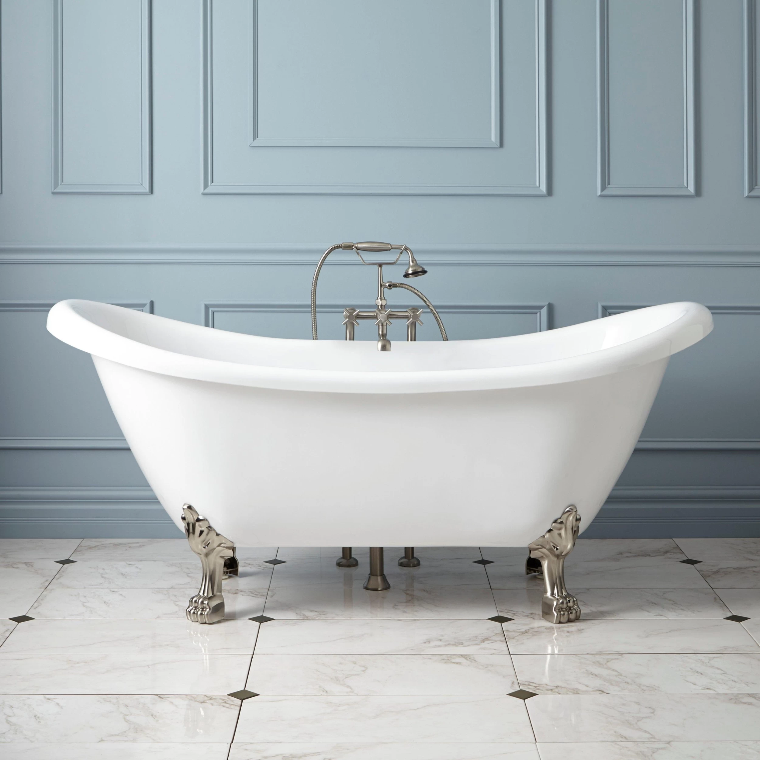 Daily cares are quickly forgotten in the 63″ Rosalind Acrylic Double-Slipper Tub, elevated on handsome lion paw feet. Inspired by vintage designs, this freestanding tub brings refinement to your master bath, and its generous size encourages you to fully stretch out.