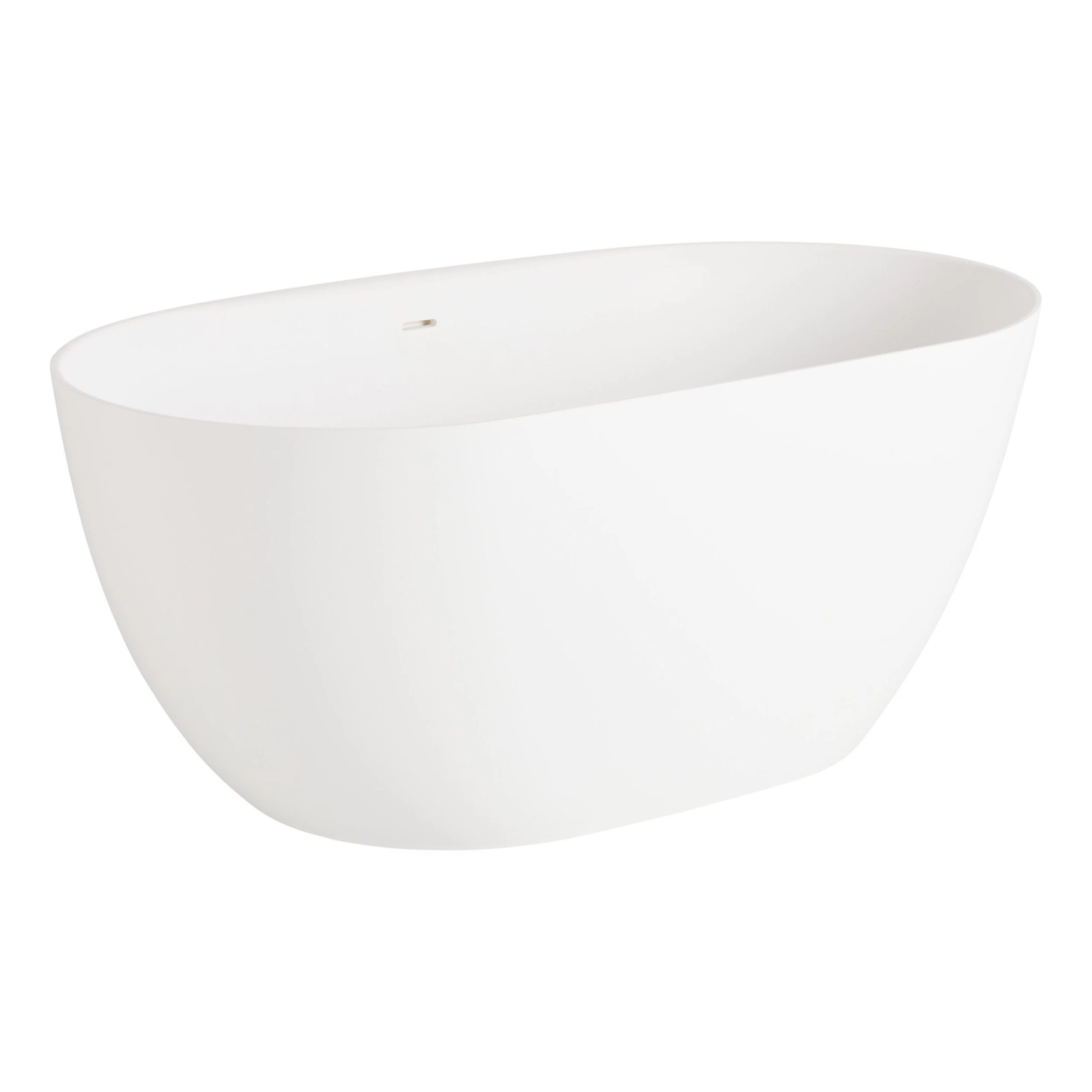 Enjoy a relaxing soak with the 66? Catino Solid Surface Freestanding Tub. Its sleek oval shape and matte finish make it easy to maintain and a perfect addition for modern bathrooms. For enhanced style, pair with a complementing tub filler.