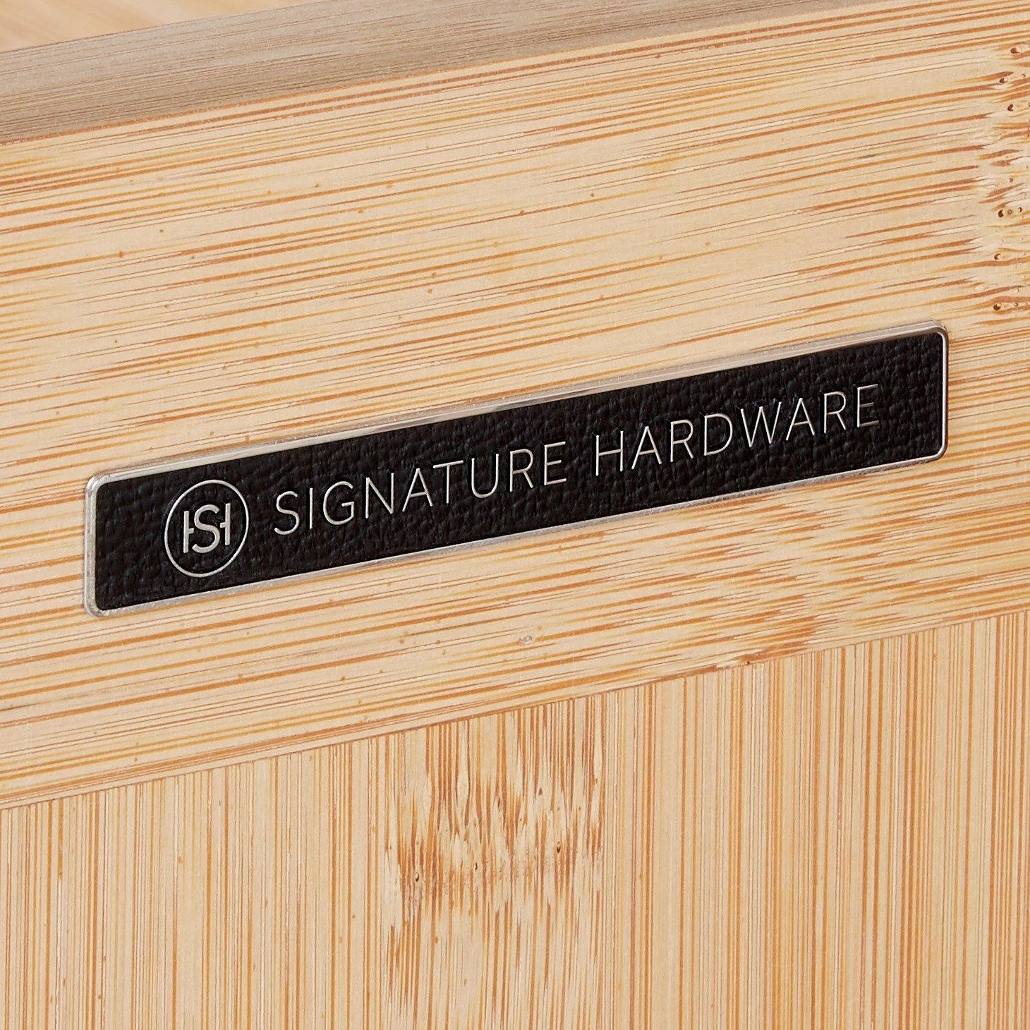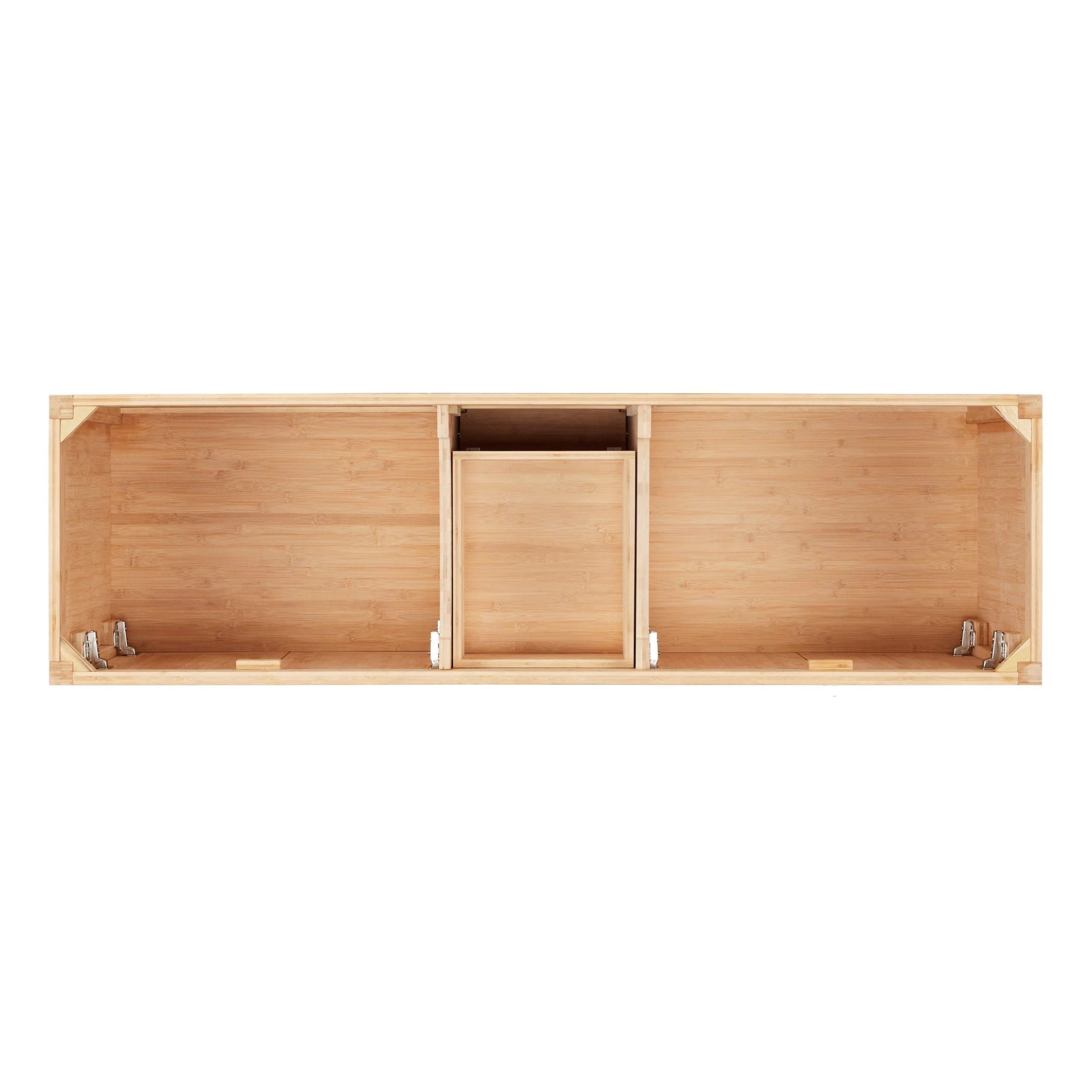 Invite luxury into your bathroom with the 72″ Burfield Double Vanity. Made with natural bamboo, this organic centerpiece is durable and moisture-resistant. Its spacious configuration allows for ample storage options in shared or single spaces. Featuring three roomy soft-close dovetail drawers, two built-in cabinets, and two open shelving units, users will never run out of options. Complete the look with a matching Burfield vanity mirror.