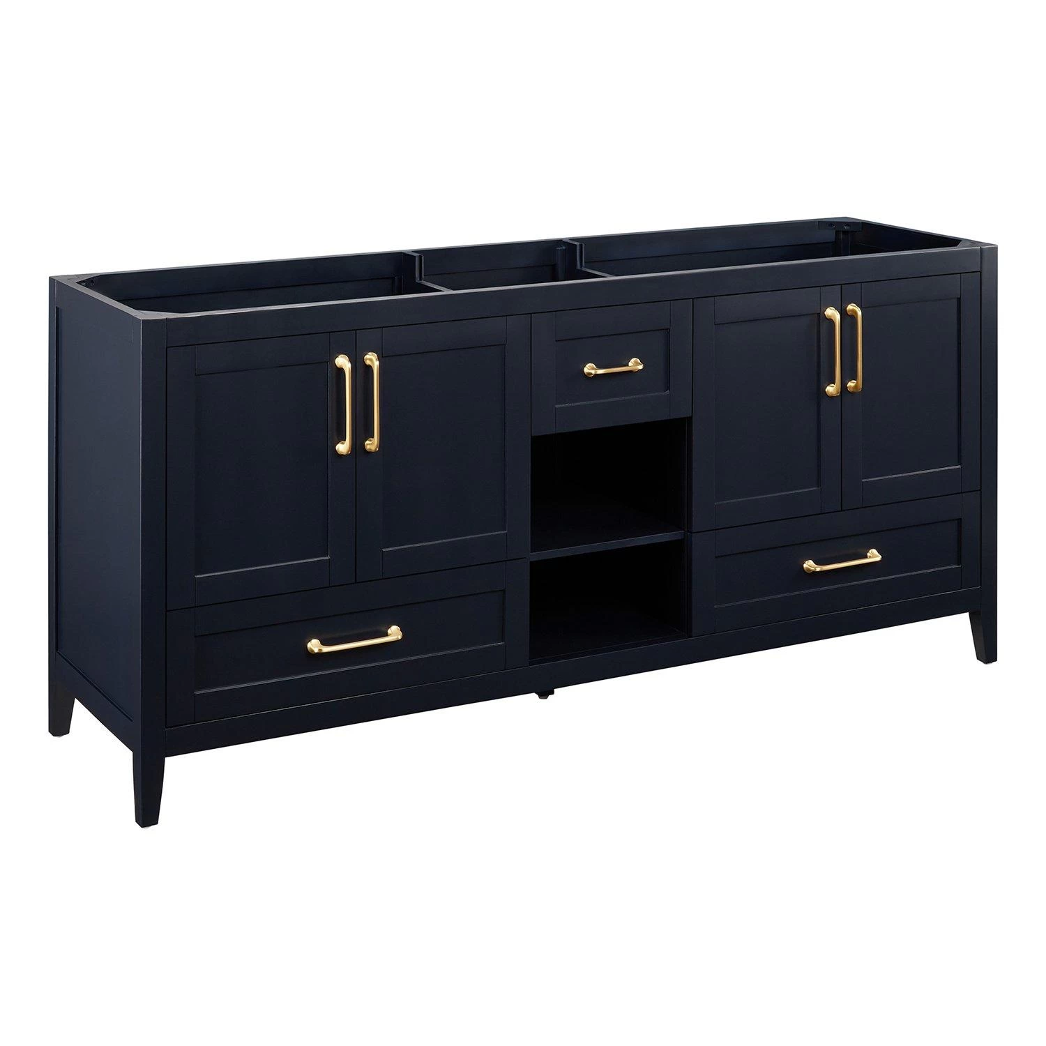 - Includes a matching backsplash and a pair of white porcelain sinks.