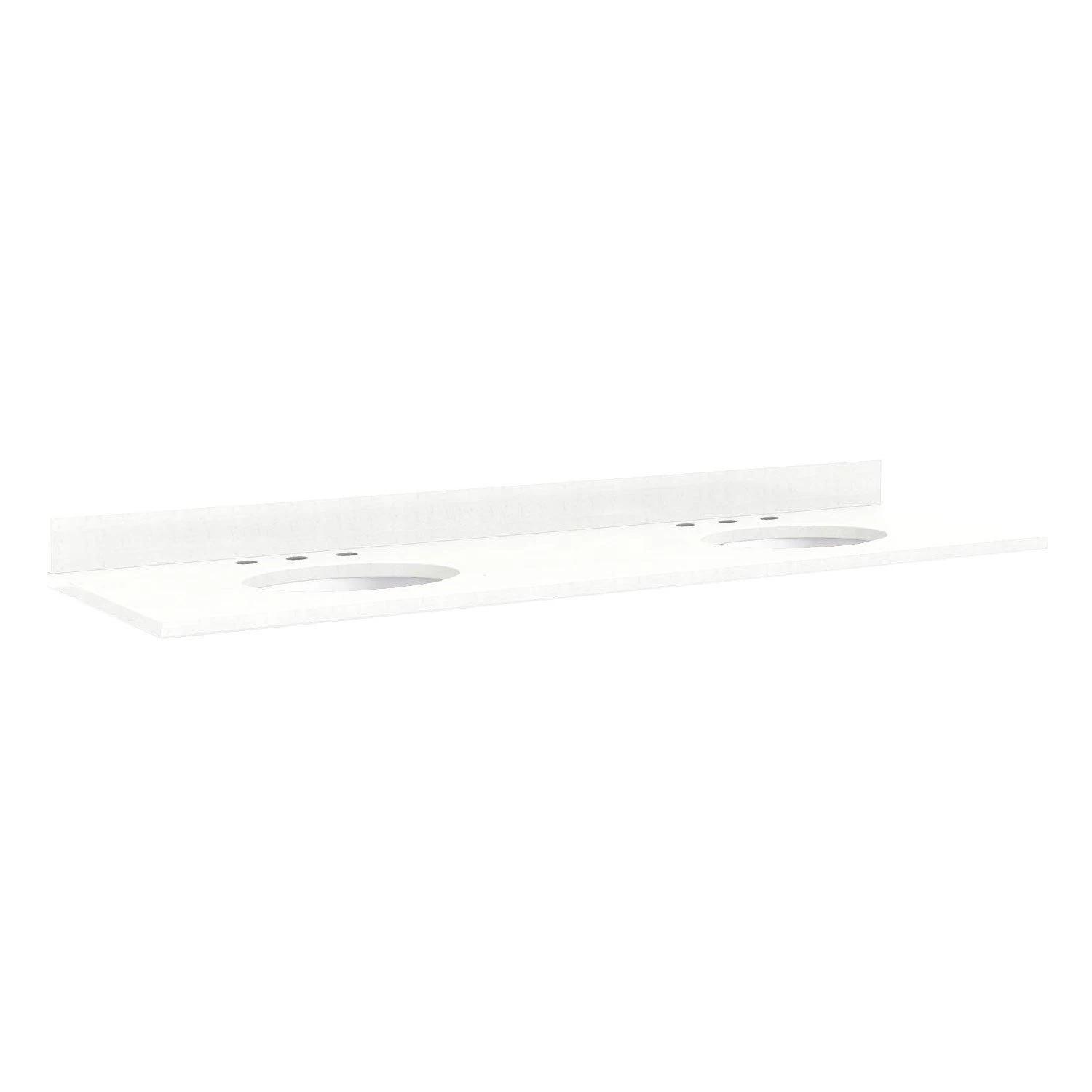 - Includes vanity top and white porcelain sinks.