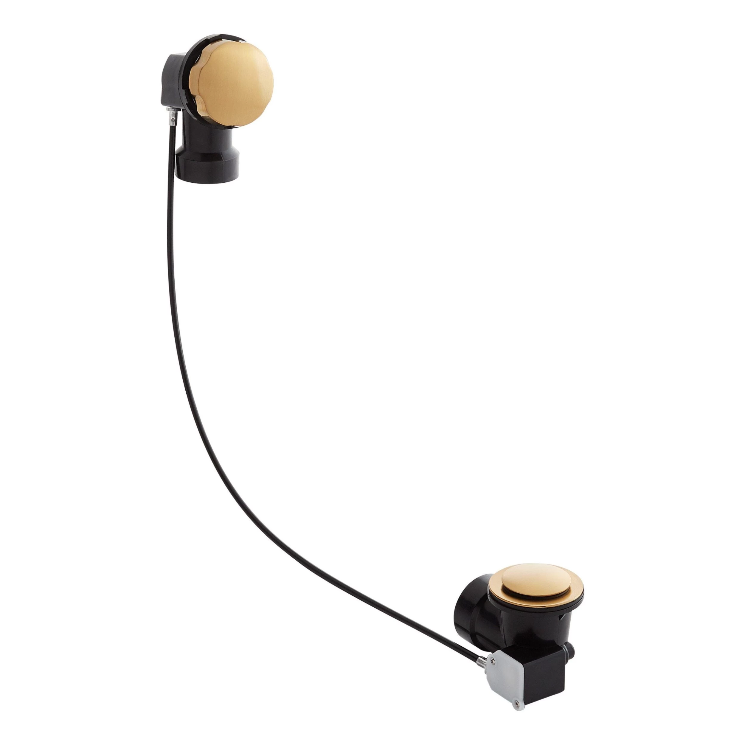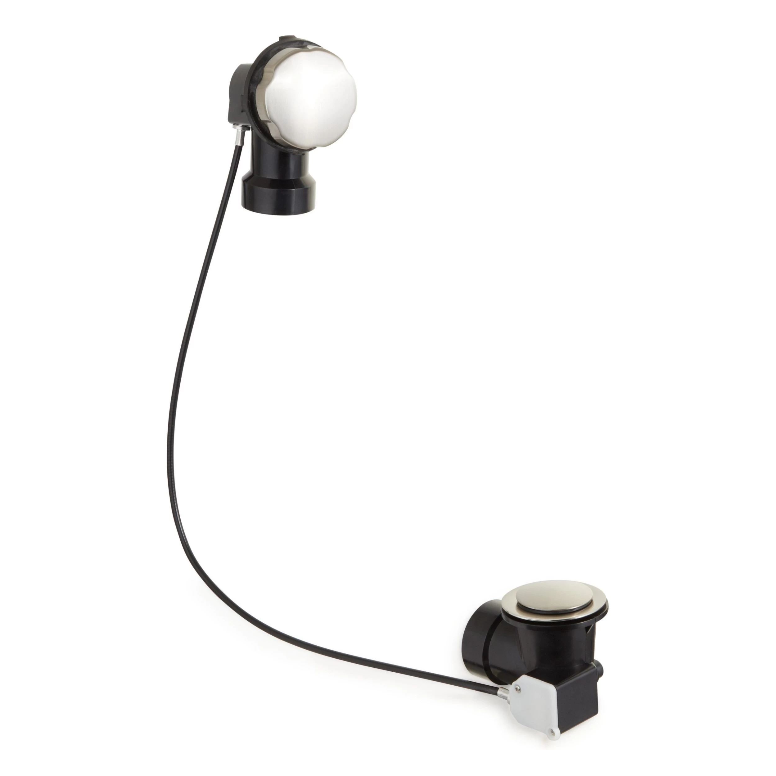 The bathtub Cable Drain & Overflow Kit is controlled by its easy-to-turn knob. A concealed, metal cable that runs along the outside of the pipes to the drain opens and closes the stopper as the knob is turned. This efficient design along with durable brass construction ensure this drain will be a lasting addition.