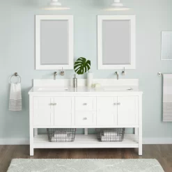 60″ Olsen Double Console Vanity – Soft White – Rectangular Undermount