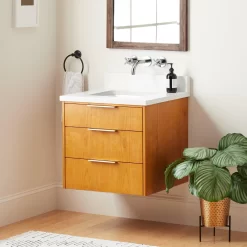 24″ Dita Wall-Mount Vanity With Rectangular Undermount Sink – Honey Oak