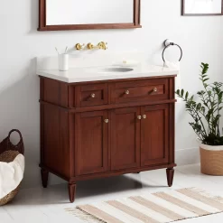 48″ Manolin Vanity For Left Offset Rect Undermount Sink – Aged Auburn – Carrara Marble Widespread