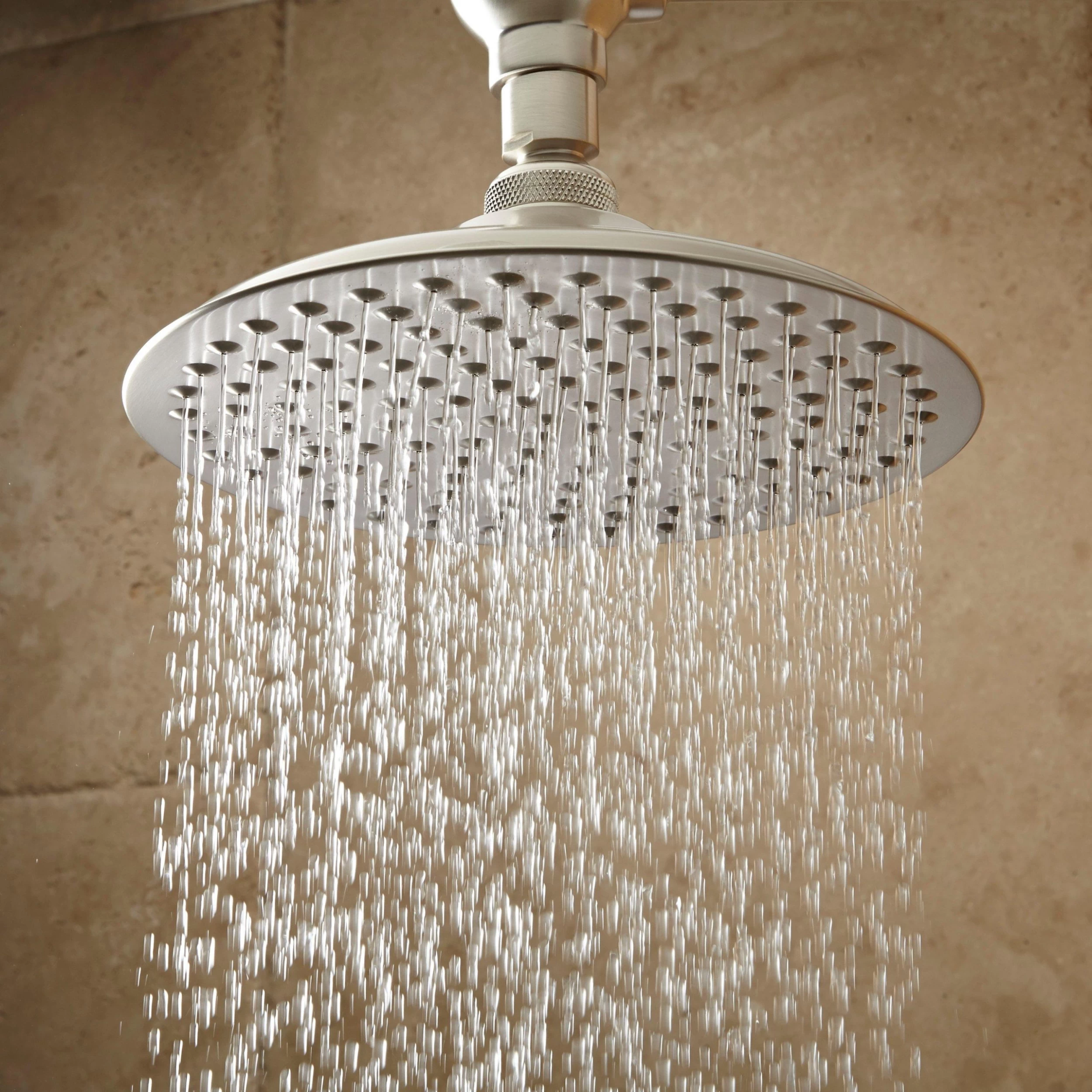 - 8″ and 10″ shower heads are adjustable and feature a swivel connection.
