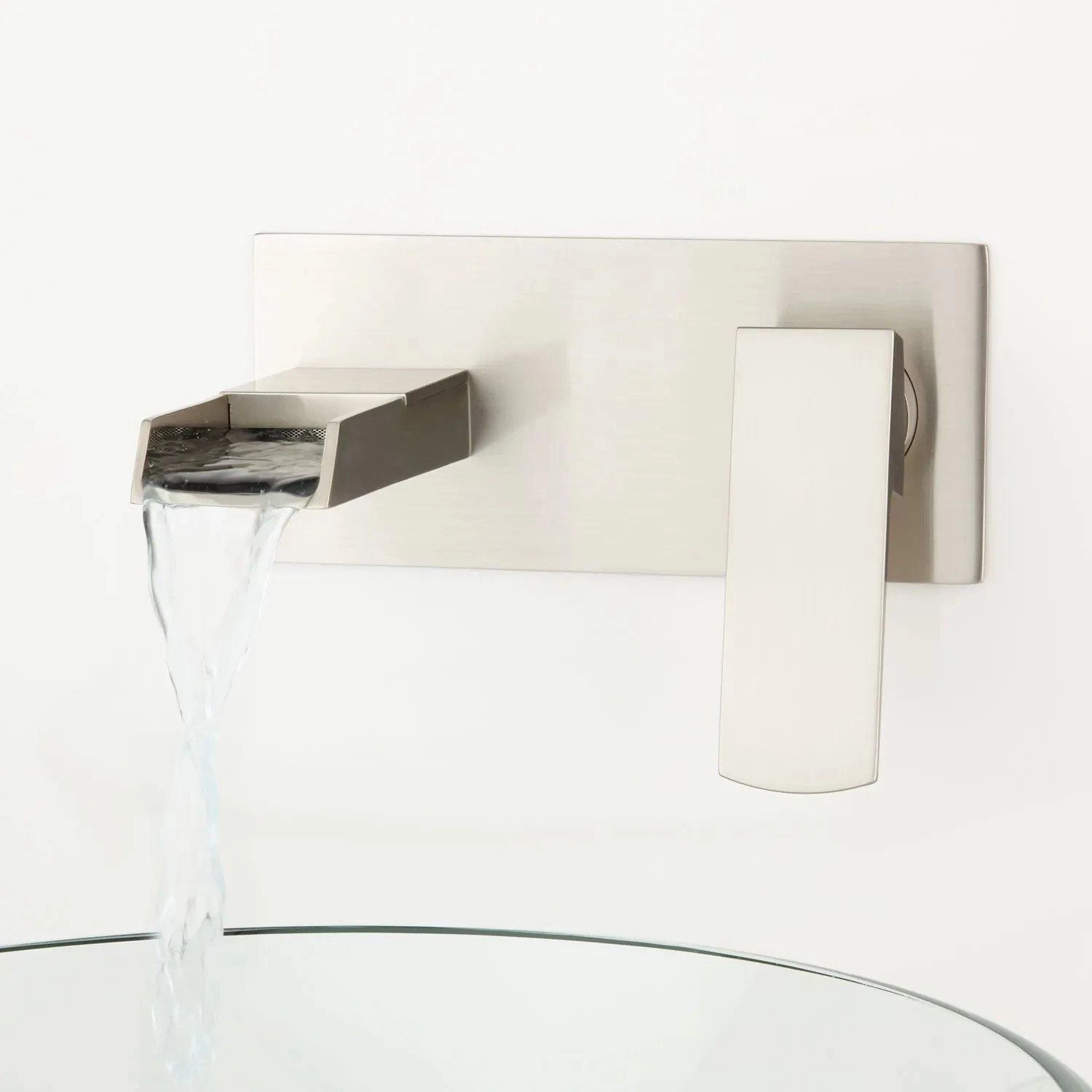 The Broeg Wall-Mount Waterfall Faucet?s open-top design allows water to steadily cascade into your sink. The single lever resides to the side of the spout, making operation a breeze. The Broeg is made of solid brass.