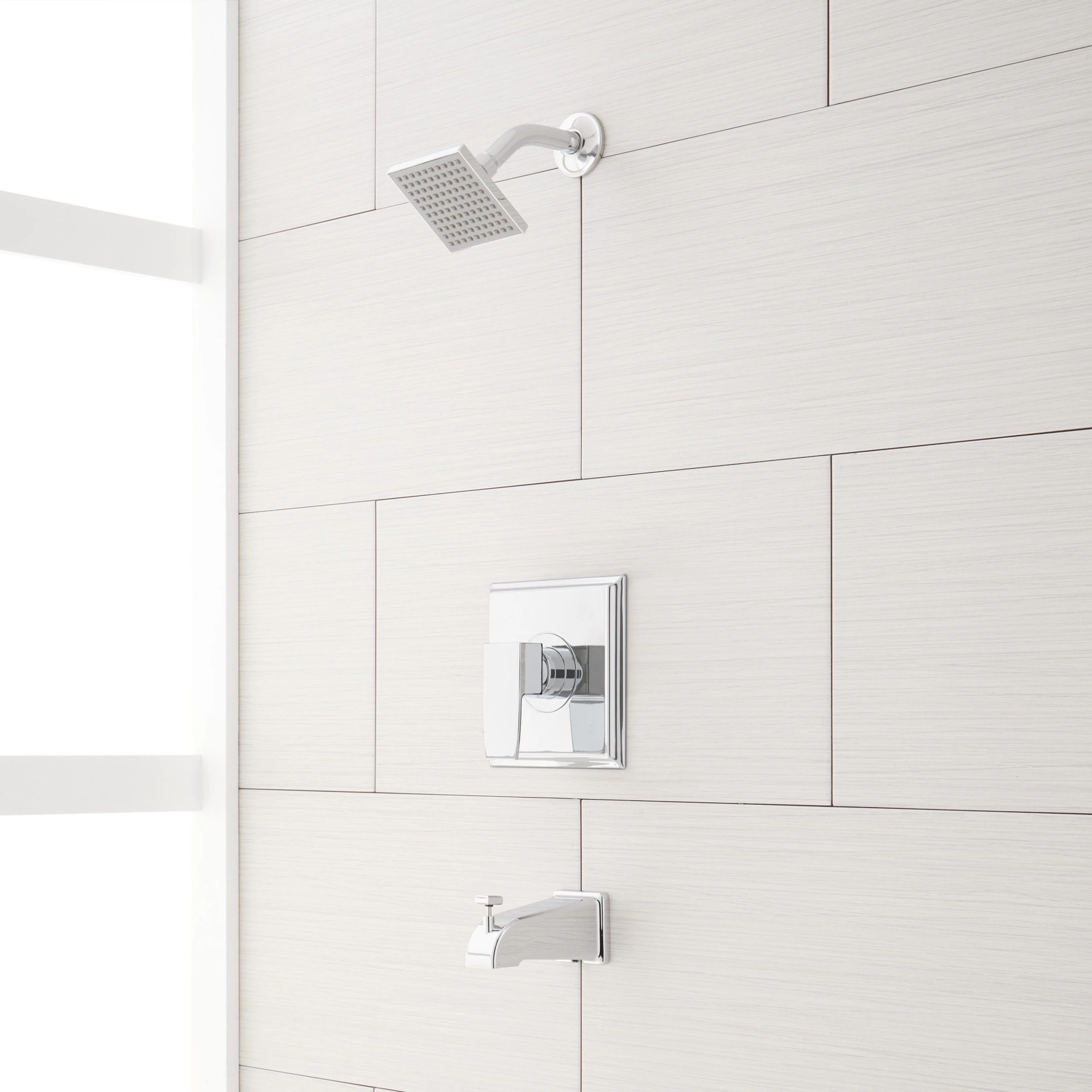 The Casement Tub & Shower Set with Lever Handle is distinguishable with its unique square designed shower head and oversized lever. Not only is this bath hardware eye-catching, it also creates a relaxing experience with the pressure balance valve making it easy to adjust the temperature and water flow.