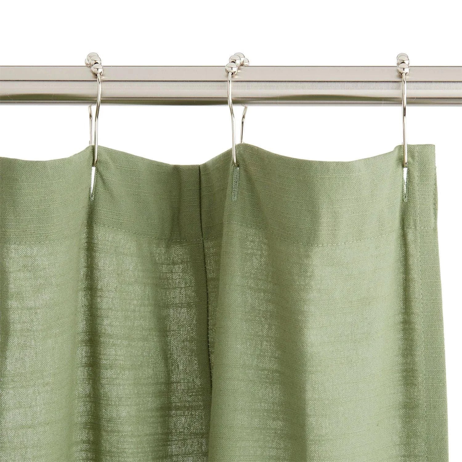 The olive green shower curtain is the perfect complement to a stylish guest or master bath. Made of heavy-duty, 100% cotton, this product is machine washable to keep it looking new. Select a size that fits your space.