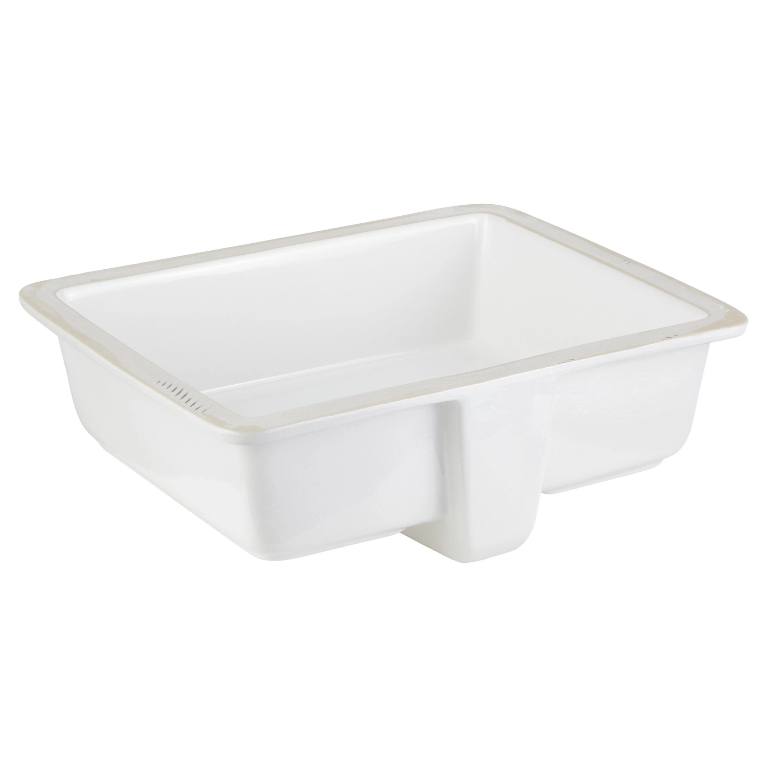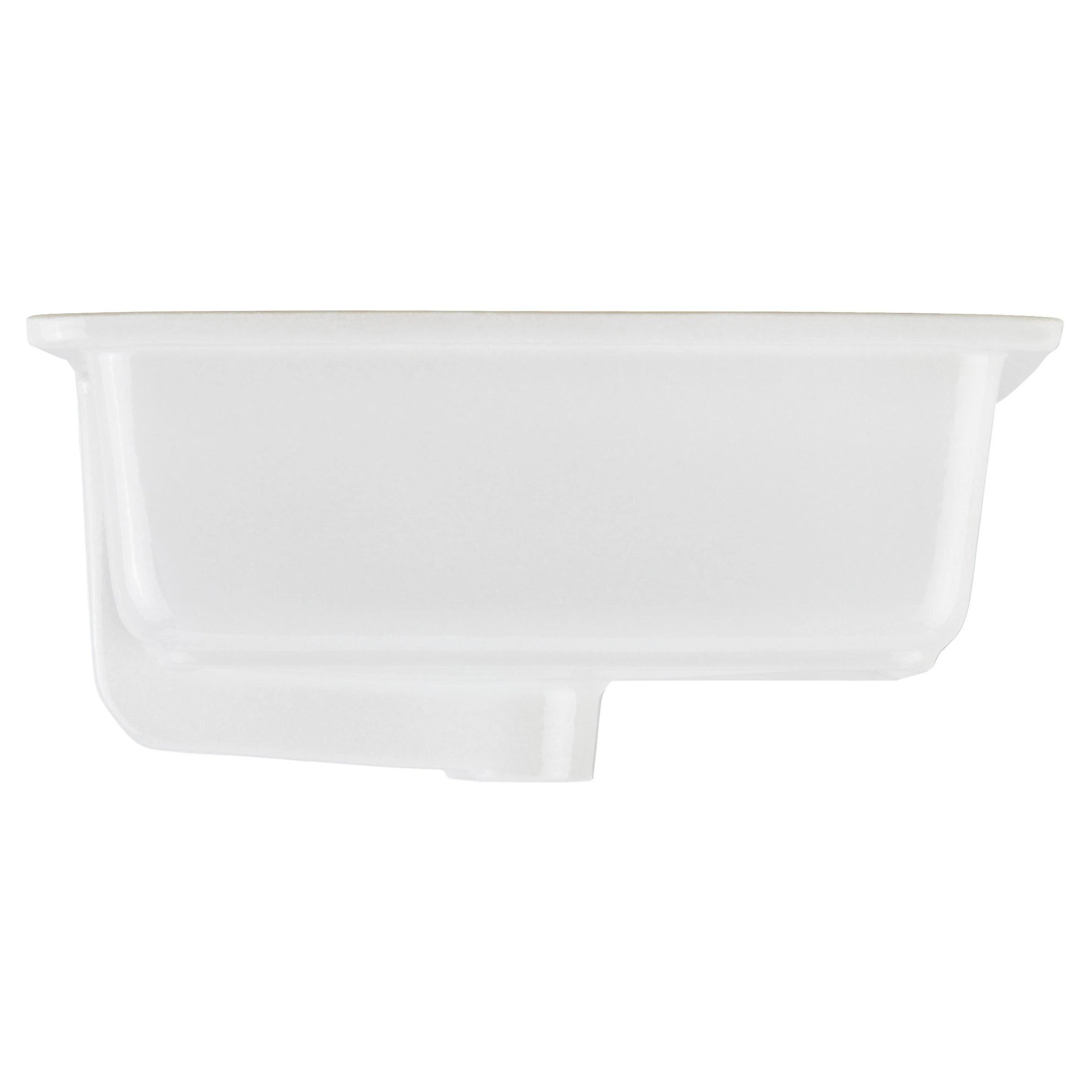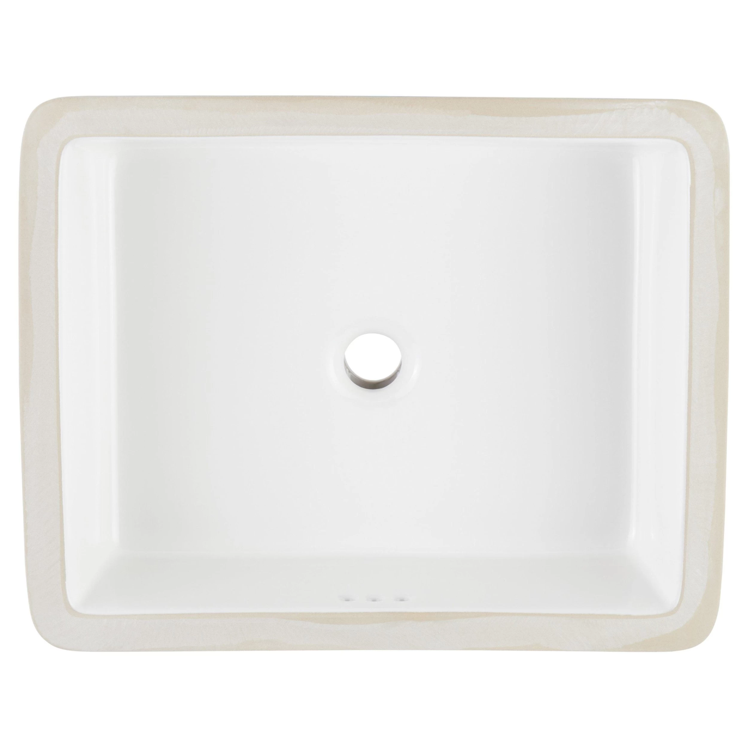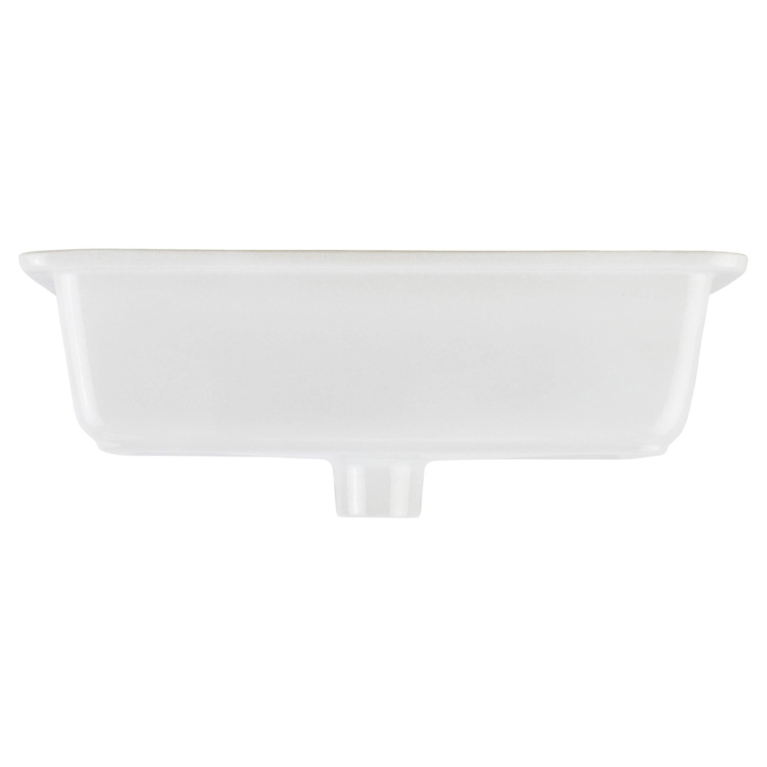 The glazed underside is just one reason to appreciate this white Destin Rectangular Undermount Bathroom Sink. It’s made from vitreous china, which is porcelain that’s coated with a protective finish for added durability and stain resistance. This basin has a center hole to accommodate a standard sink drain. The rear overflow prevents water from spilling over the edge.