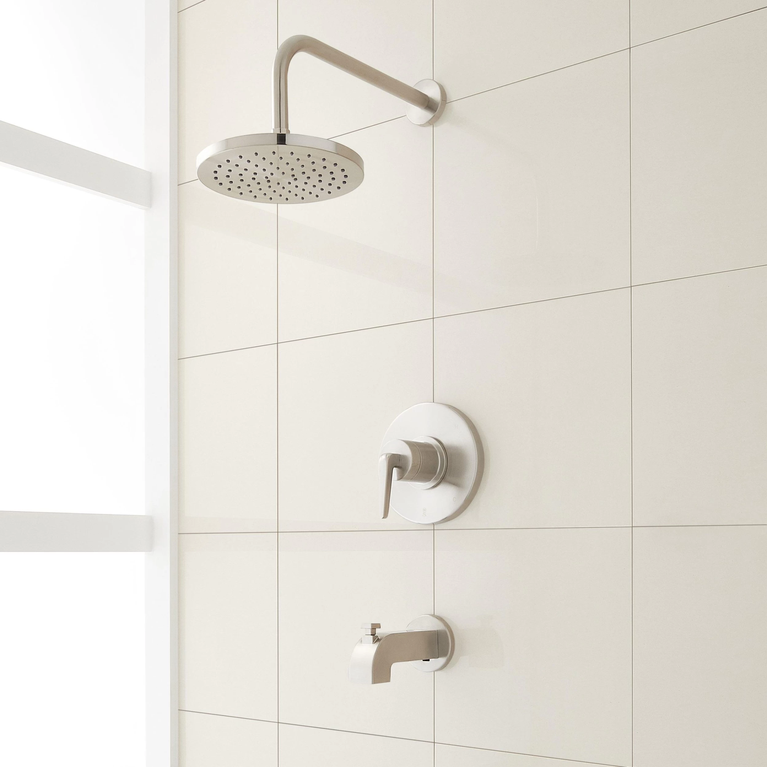 Elevate your bathroom setup with the Drea Pressure Balance Tub and Shower System. Including a rainfall shower head, a single-lever handle, and a diverter tub spout, these fixtures work in tandem to deliver a luxurious experience while exuding a sleek, minimalist look. Available in an array of stunning finishes that resist rust and corrosion, the Drea is built to last.