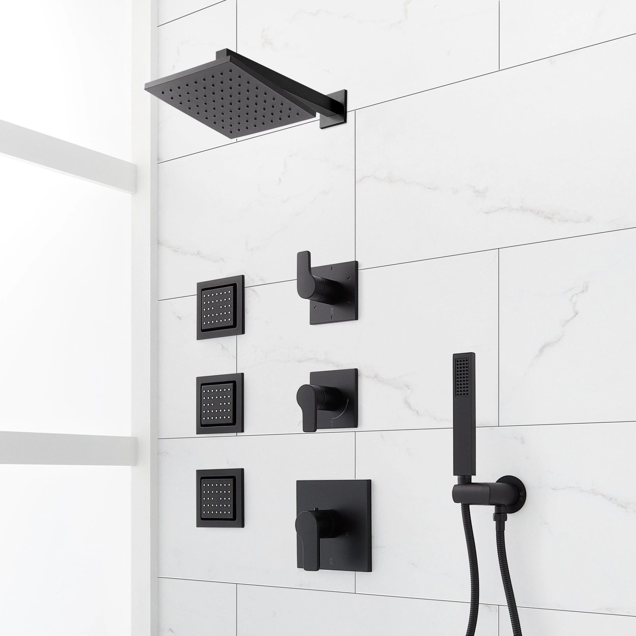 Convert your shower into a spa-like oasis with the Hibiscus Thermostatic Shower System with 3 Body Sprays and Hand Shower. Built-in thermostatic technology keeps your selected water temperature maintained for a seamless, consistent experience with every use. For additional luxury, this system includes a rainfall shower head, three soothing body sprays, and a convenient hand shower. Each function can be controlled with ease using the simple single-lever valves. Sleek, uncluttered silhouettes make up each piece of the Hibiscus, completing a modern setup from style to functionality. Choose from a variety of stunning, rust-resistant finishes to best complement your space.