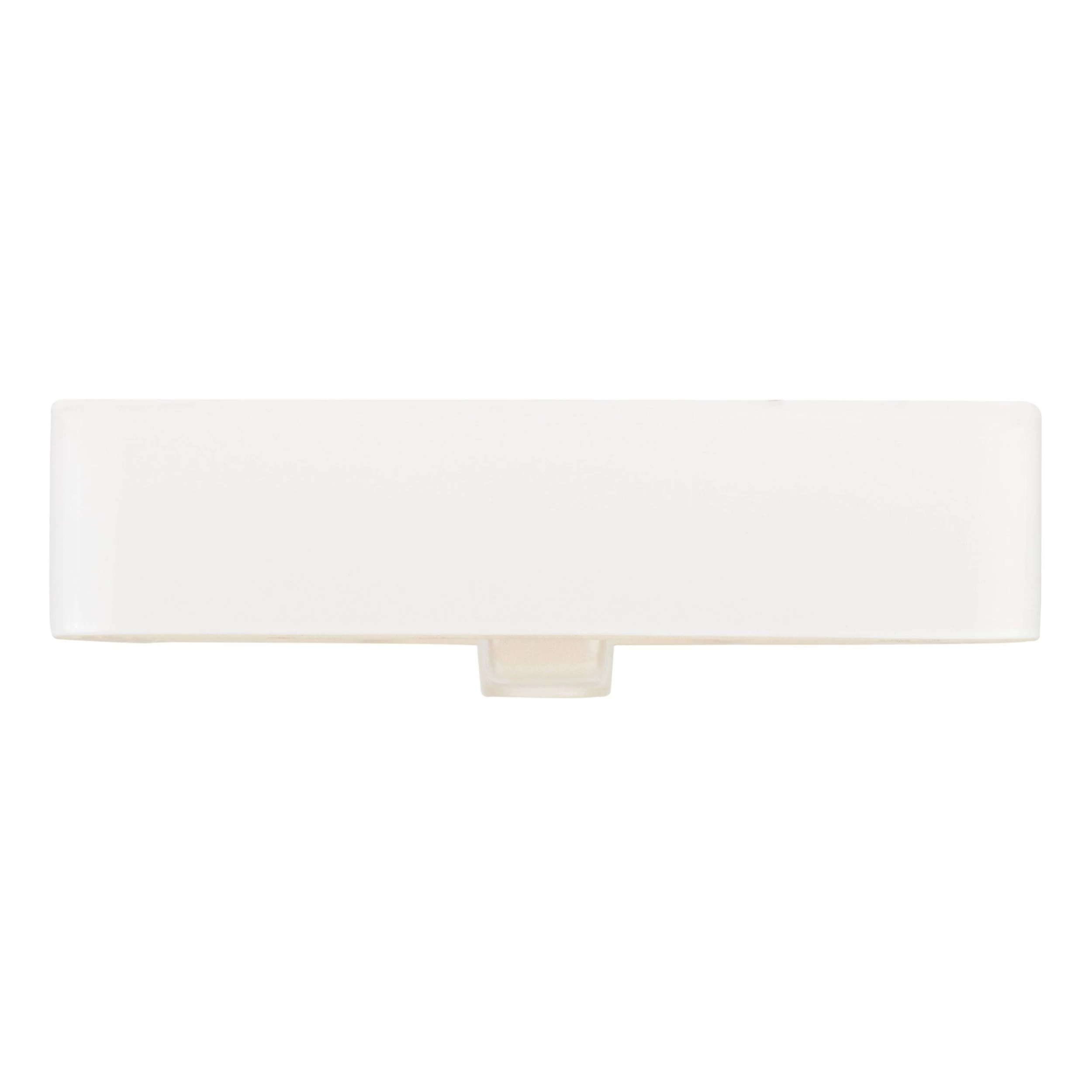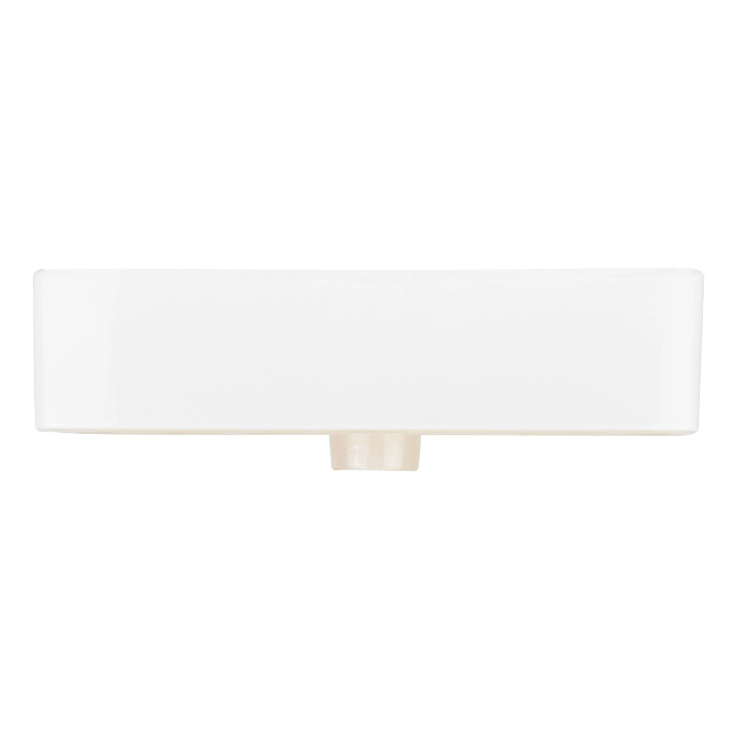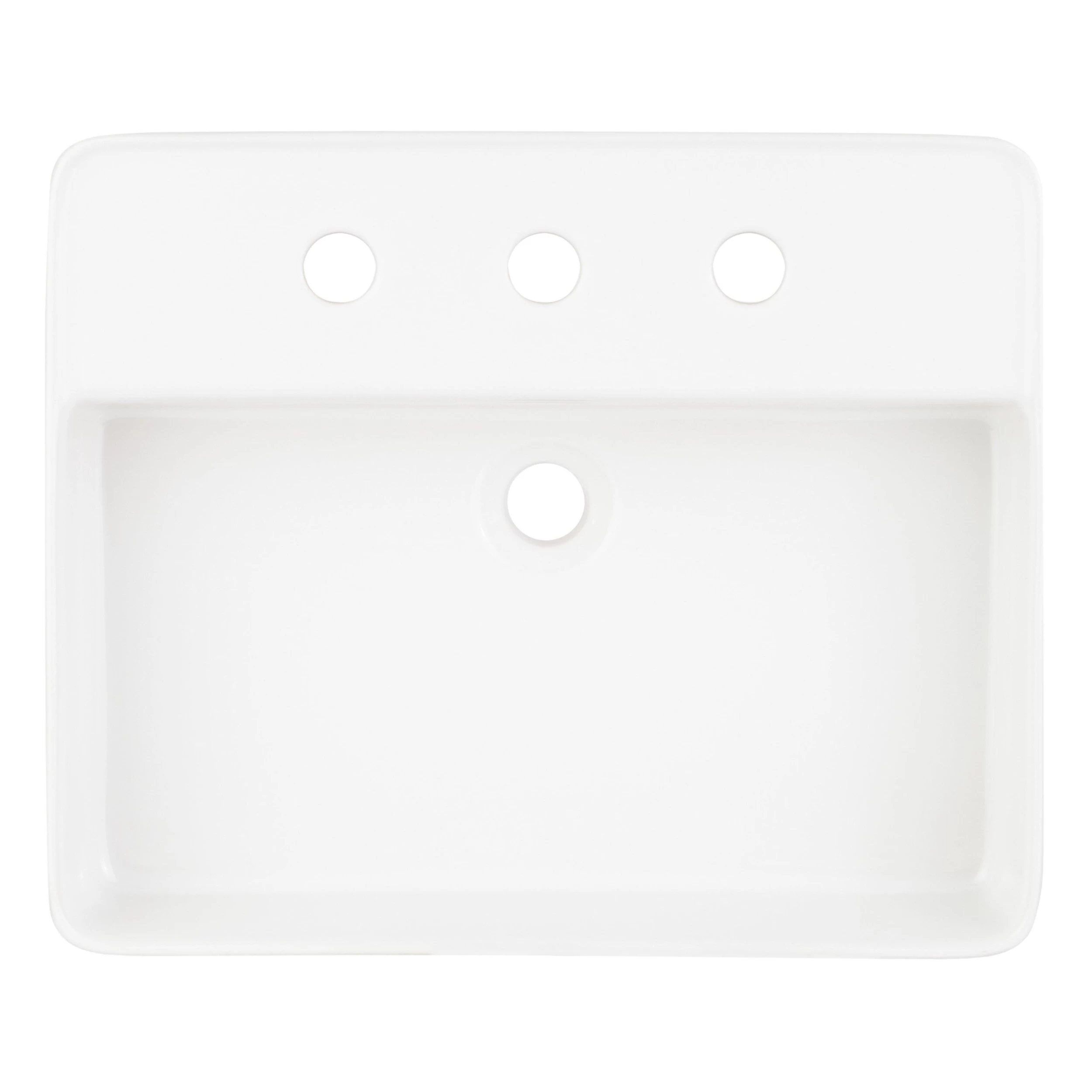 This Hibiscus Rectangular Vessel Sink enhances any bathroom with sleek, modern style. It’s crafted from durable fireclay for excellent resistance to cracks, chips, and stains, and it has an overflow to prevent spills. This smoothly enameled, white sink has a bowl depth of 3-1/2″ and comes pre-drilled for an 8″ widespread faucet of your choosing.