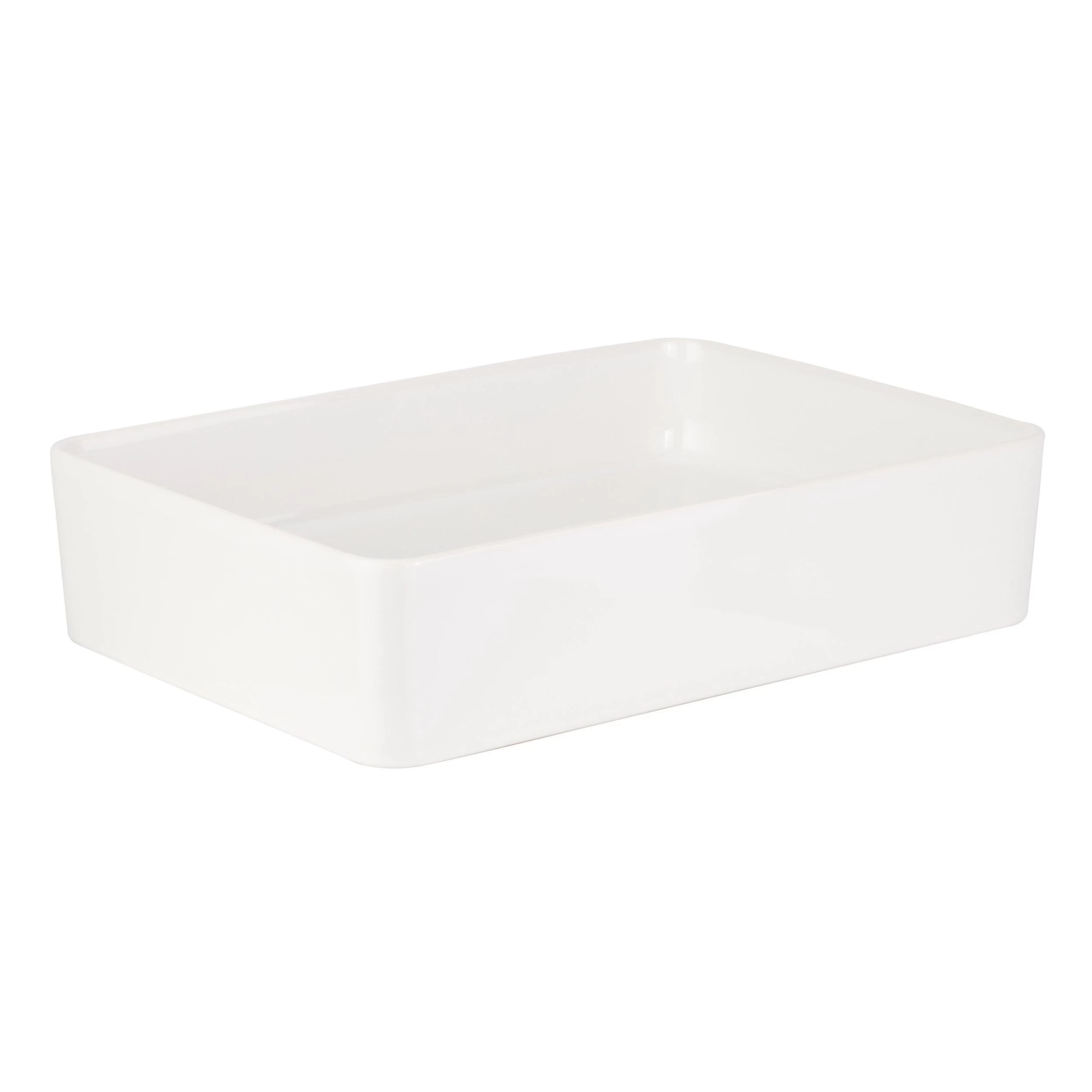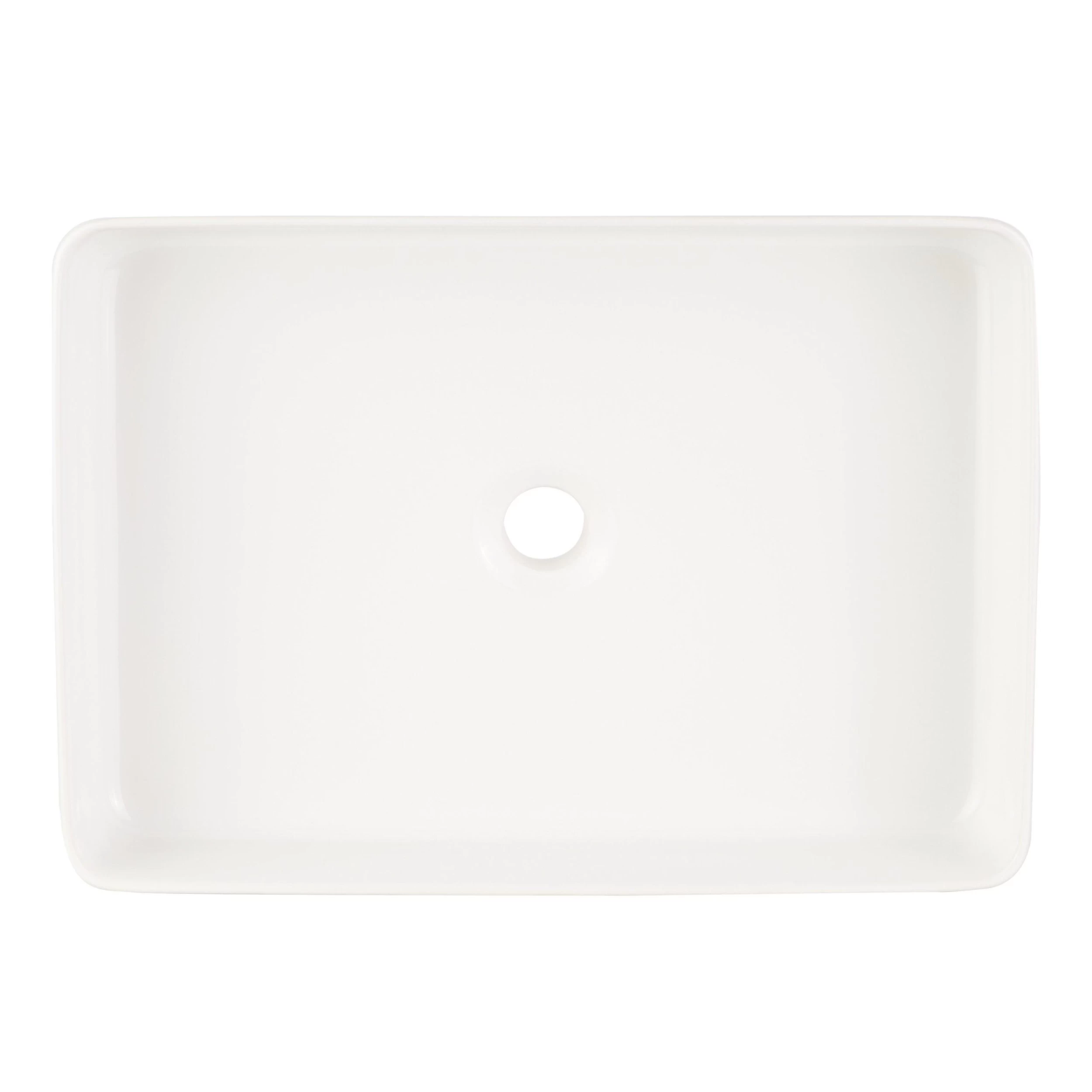 Enhance your bathroom with the Hibiscus Rectangular Vessel Sink in white. It’s crafted from fireclay for premium durability with thin walls for streamlined style. This basin has a depth of 3-3/4″ to hold plenty of water. It’s made for use with a wall-mount or counter-mount vessel faucet.