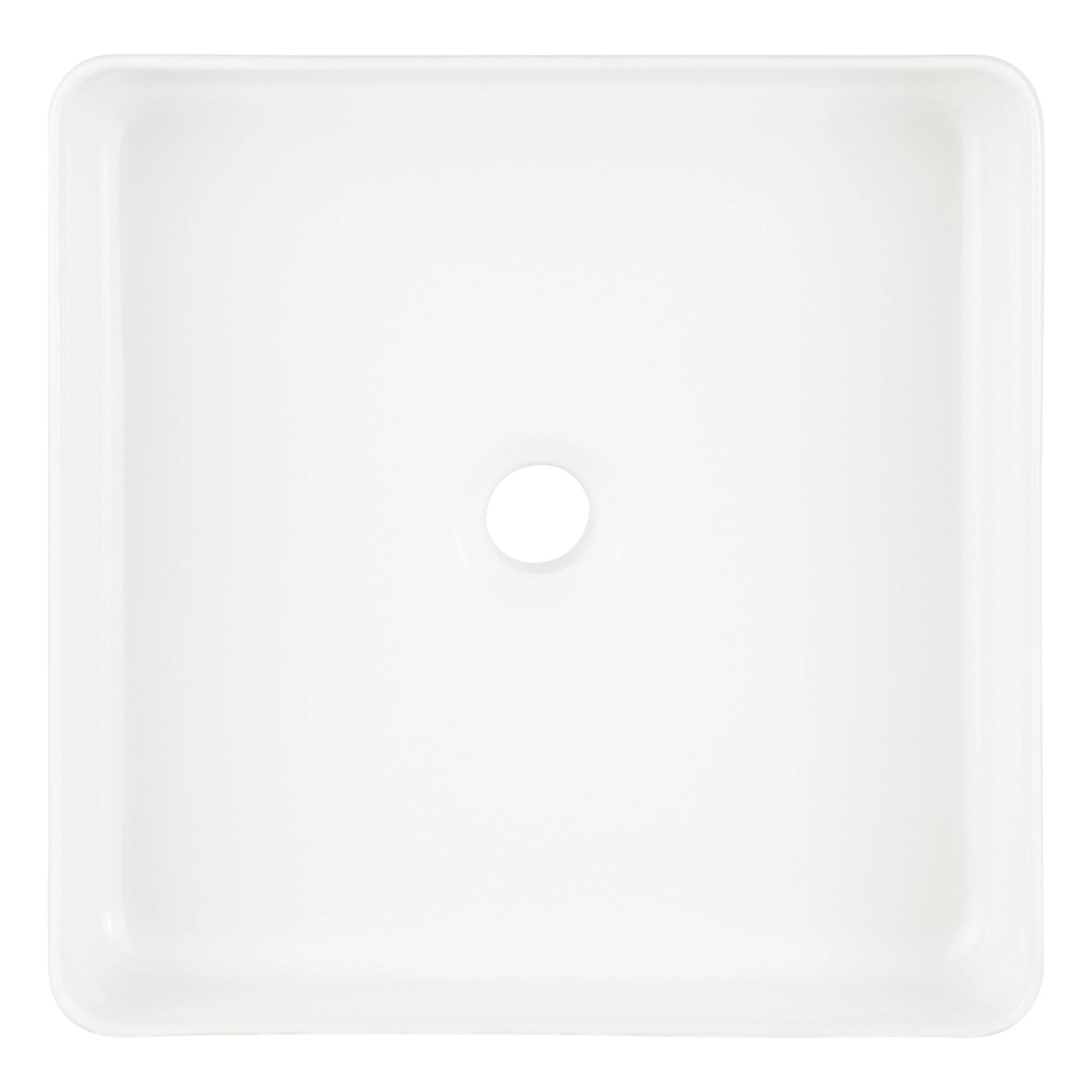 Introduce modern glamour to the bathroom with the Hibiscus Square Vessel Sink in white. It has fireclay construction for durability, with thin walls for a low-profile look. It’s designed for above-counter installation and has a generous basin depth of 3-3/4″. This 15-3/4″ sink pairs seamlessly with a stylish vessel faucet of your choosing.