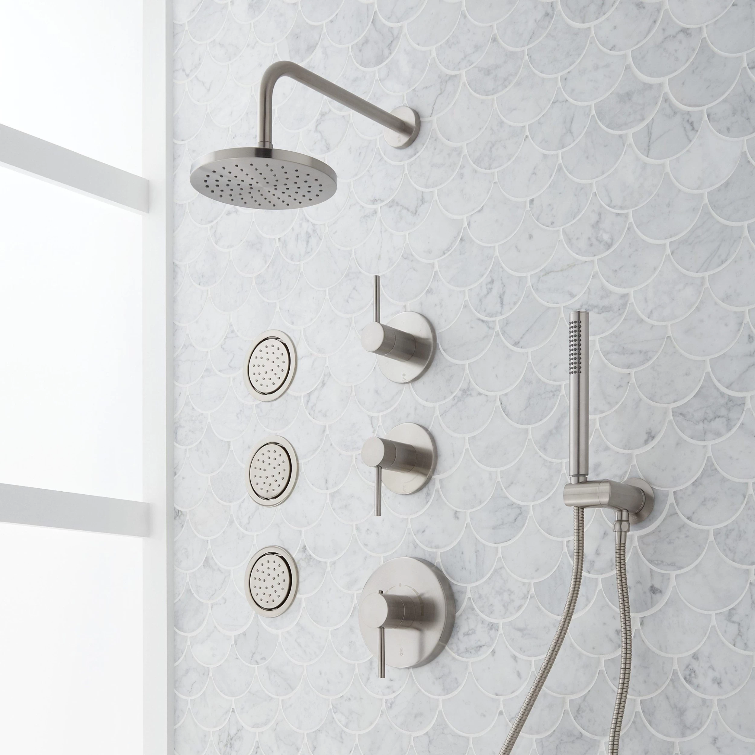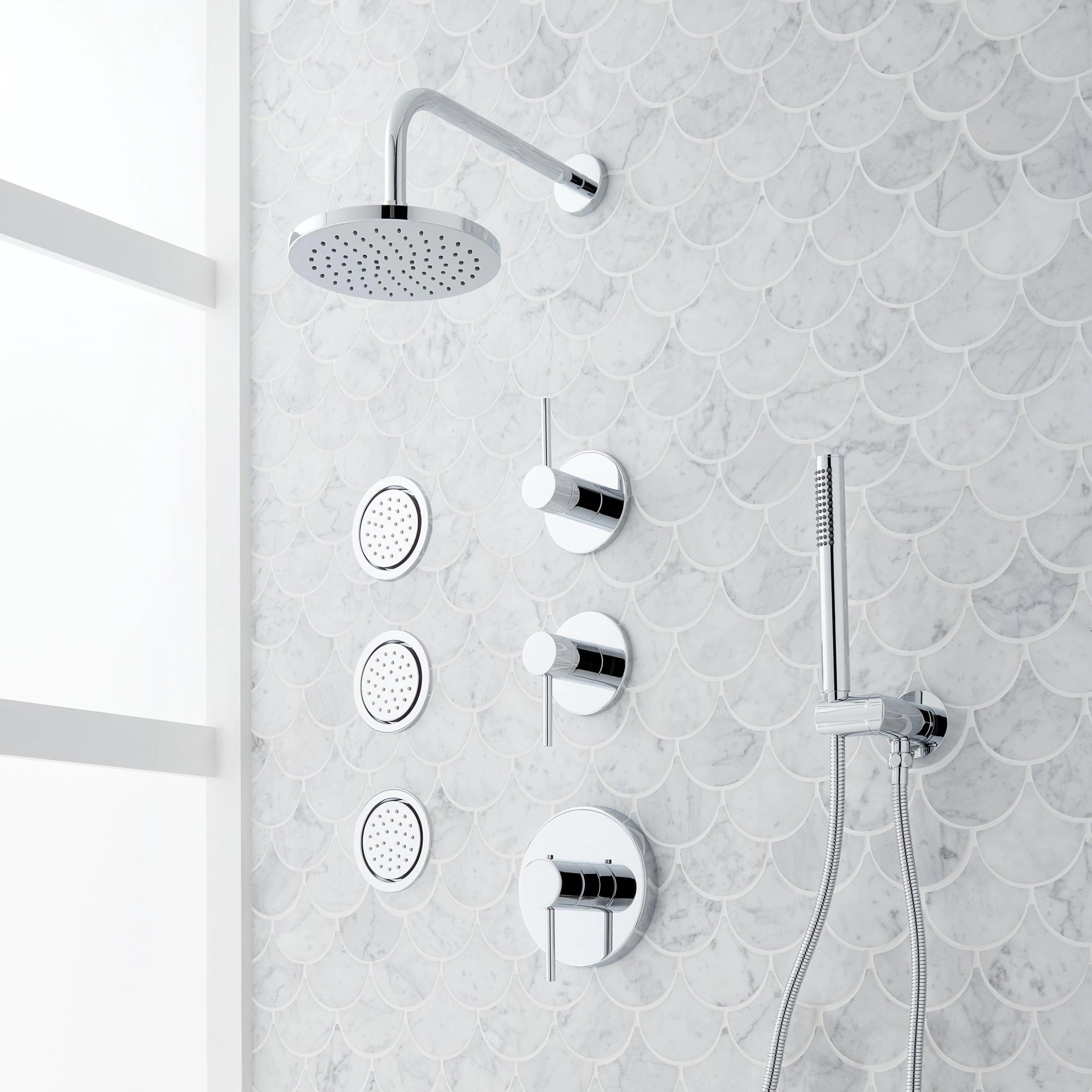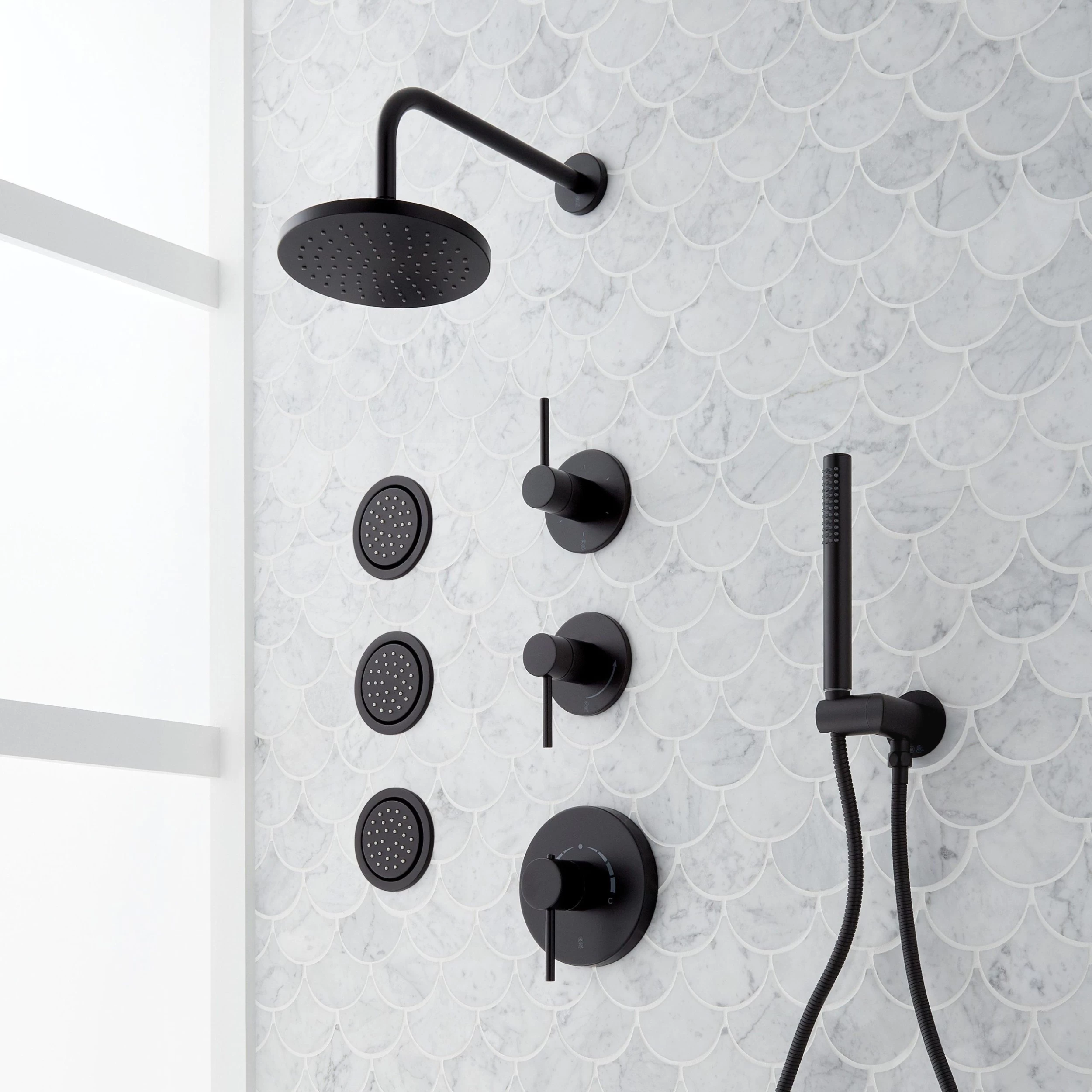- Thermostatic technology keeps shower temperature within 1 degree Celsius.