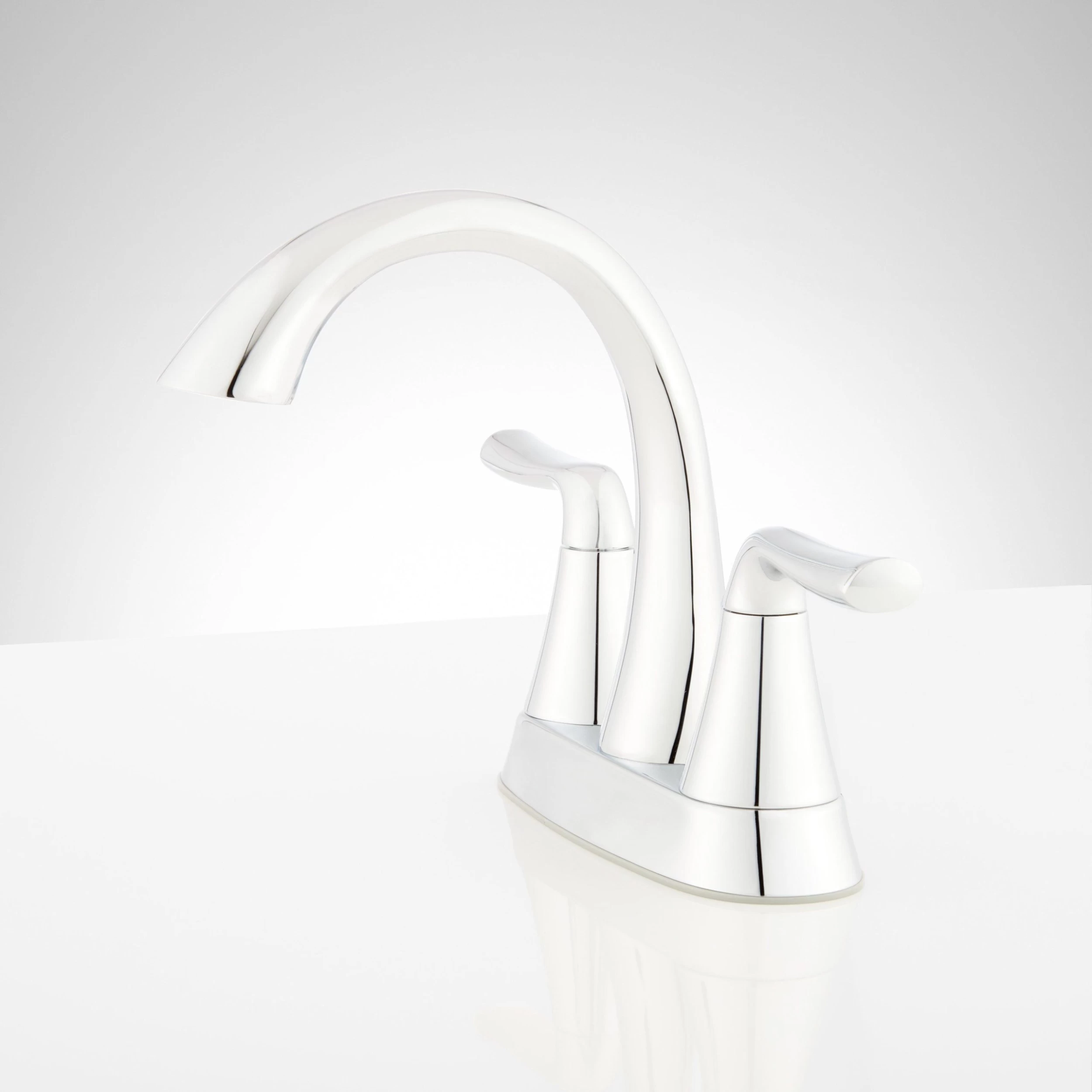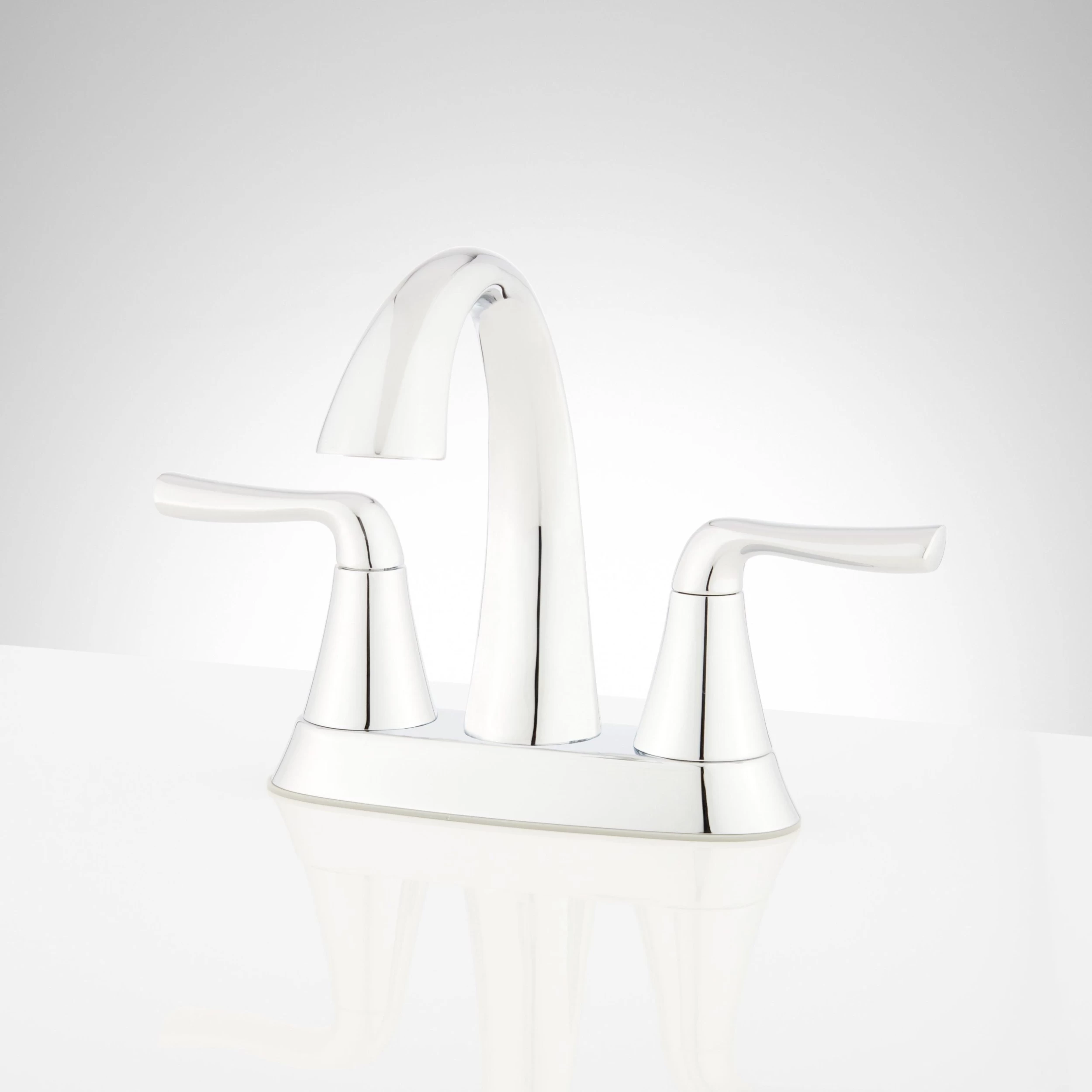 Update your bathroom with this classically elegant Provincetown Centerset Bathroom Faucet. The gently curved design of its lever handles carries over to the arching spout to form a graceful silhouette. This faucet is crafted from durable brass for lasting performance, with a tarnish-resistant finish that will never fade. Included is a matching pop-up drain for your sink.