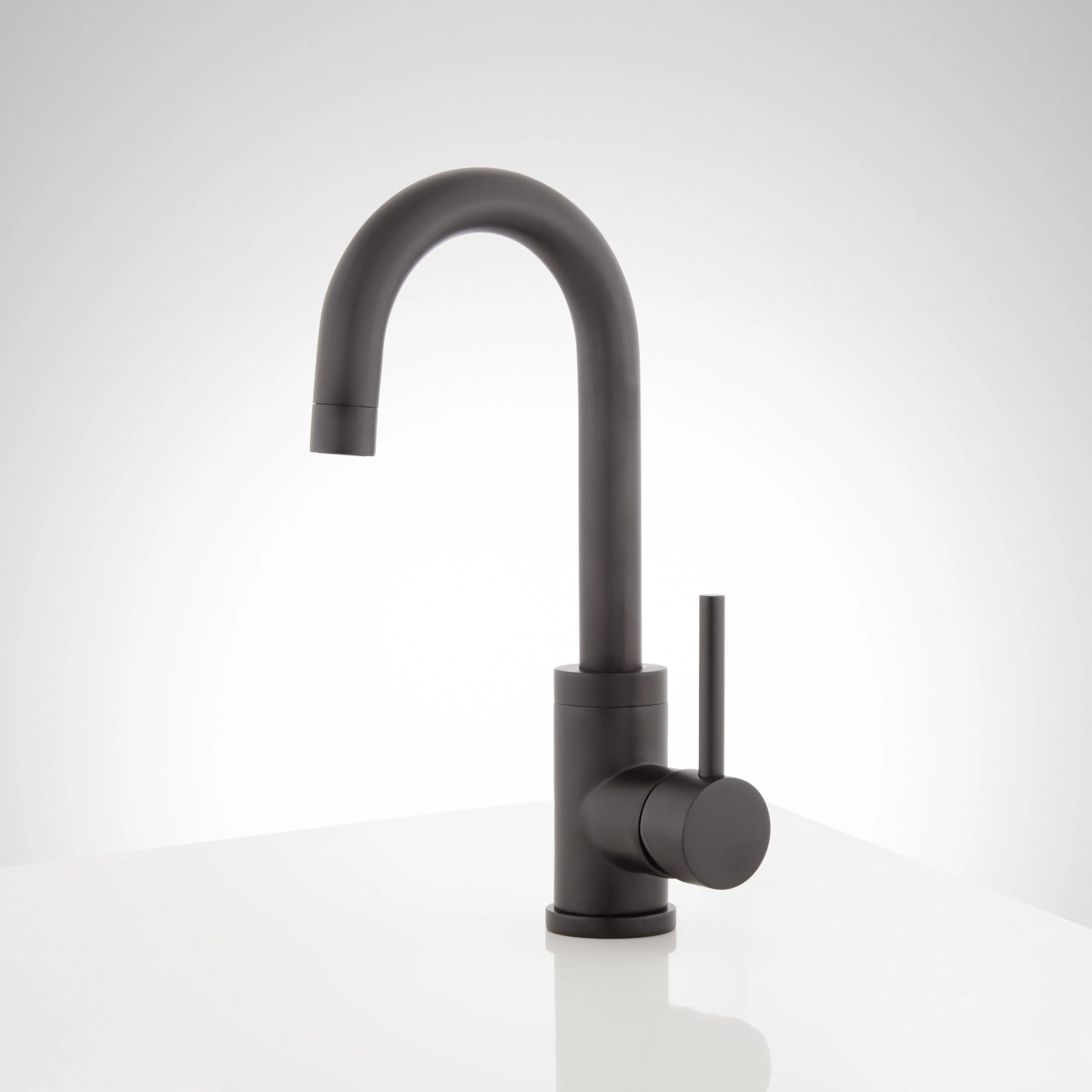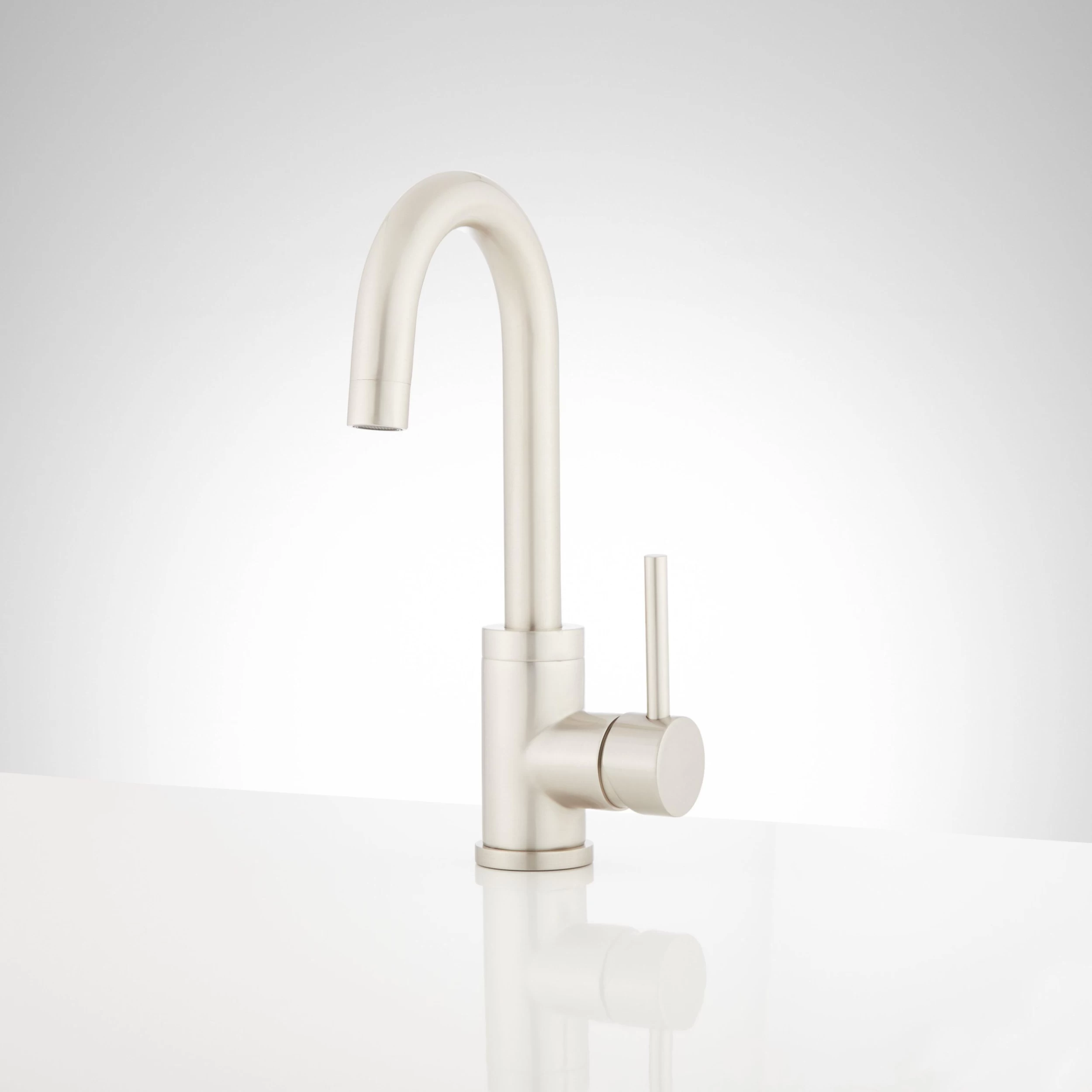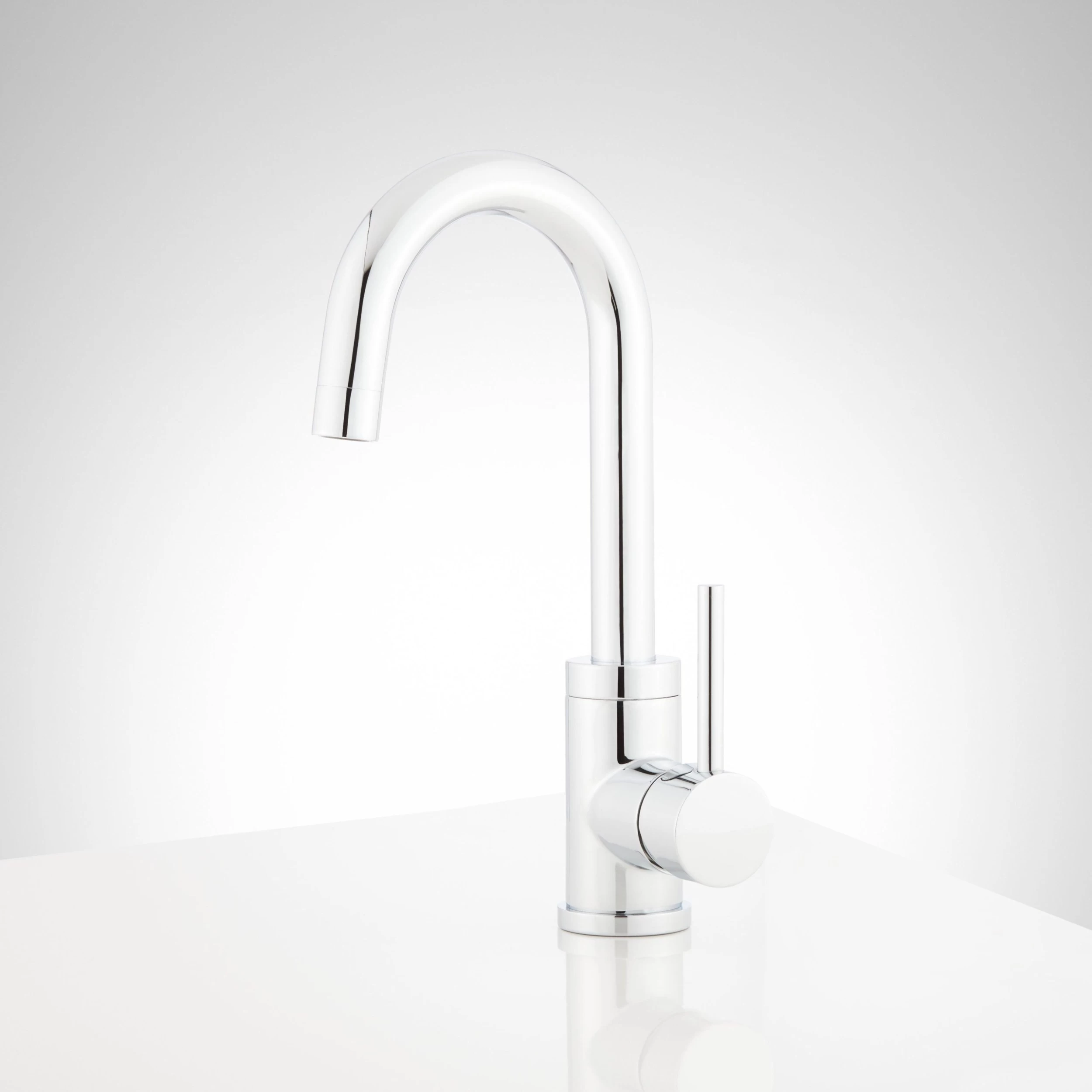 Sleek and stylish, the Ravenel Single-Hole Bar Faucet has a swiveling gooseneck and a modern design that catches the eye. Cylindrical detailing on the fixture’s base and lever handle create a look that complements a contemporary space. Built to last, this fixture is made of high quality materials and has a smooth, resilient finish.