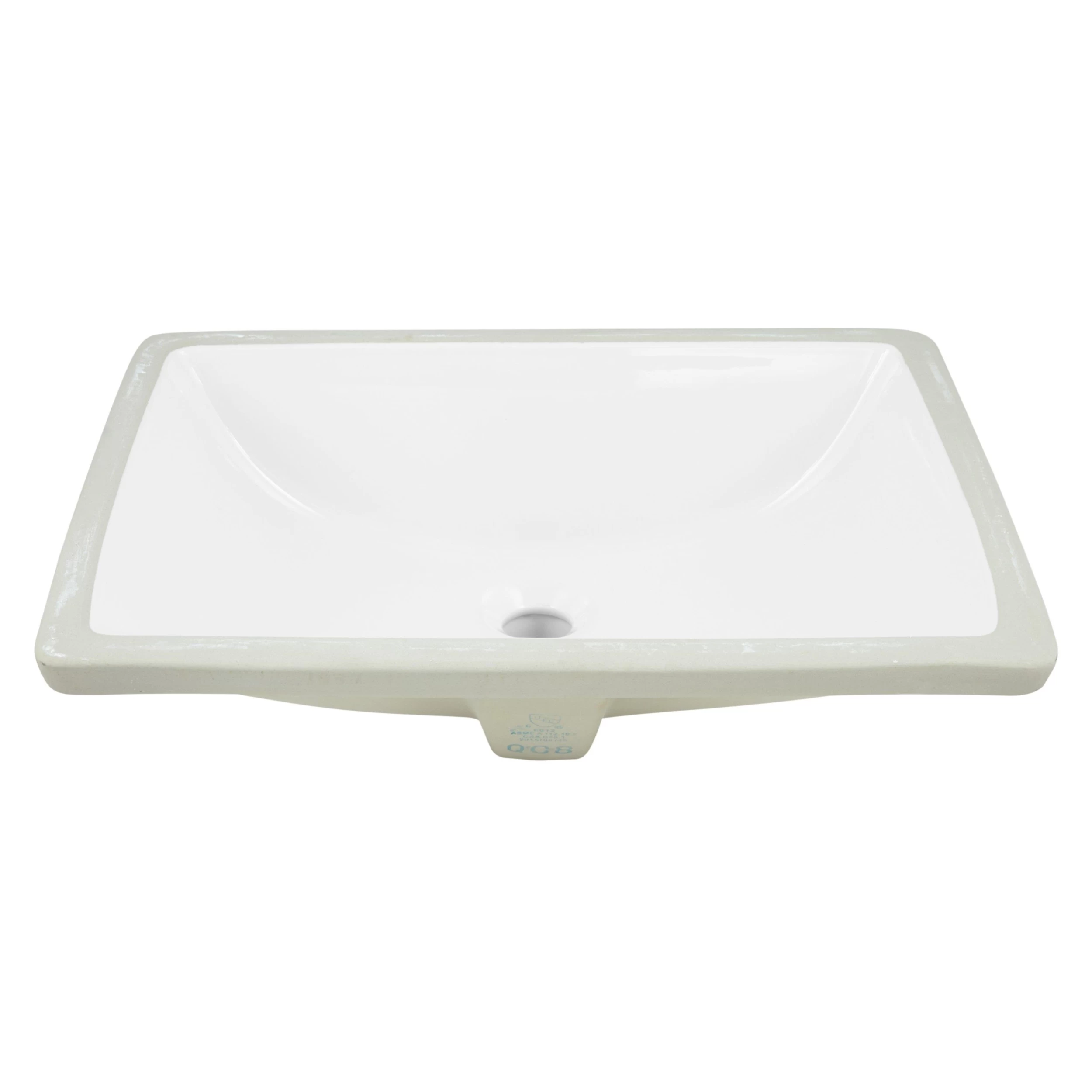 The White Rectangular Undermount Bathroom Sink features a smooth, glossy interior. Made of porcelain, this product offers plenty of room to wash up.