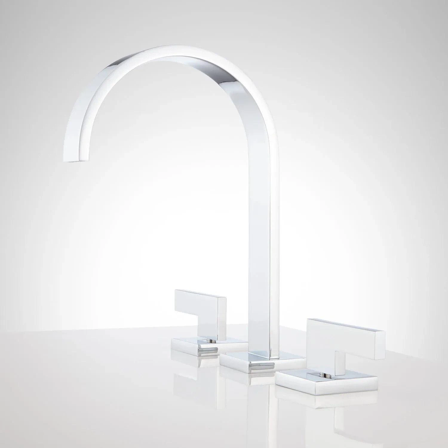This trendsetting widespread faucet will surely become the highlight of your bathroom with its unique shape. Complete with a matching drain, the Ultra Widespread Bathroom Faucet will pair nicely with any sink or vanity.