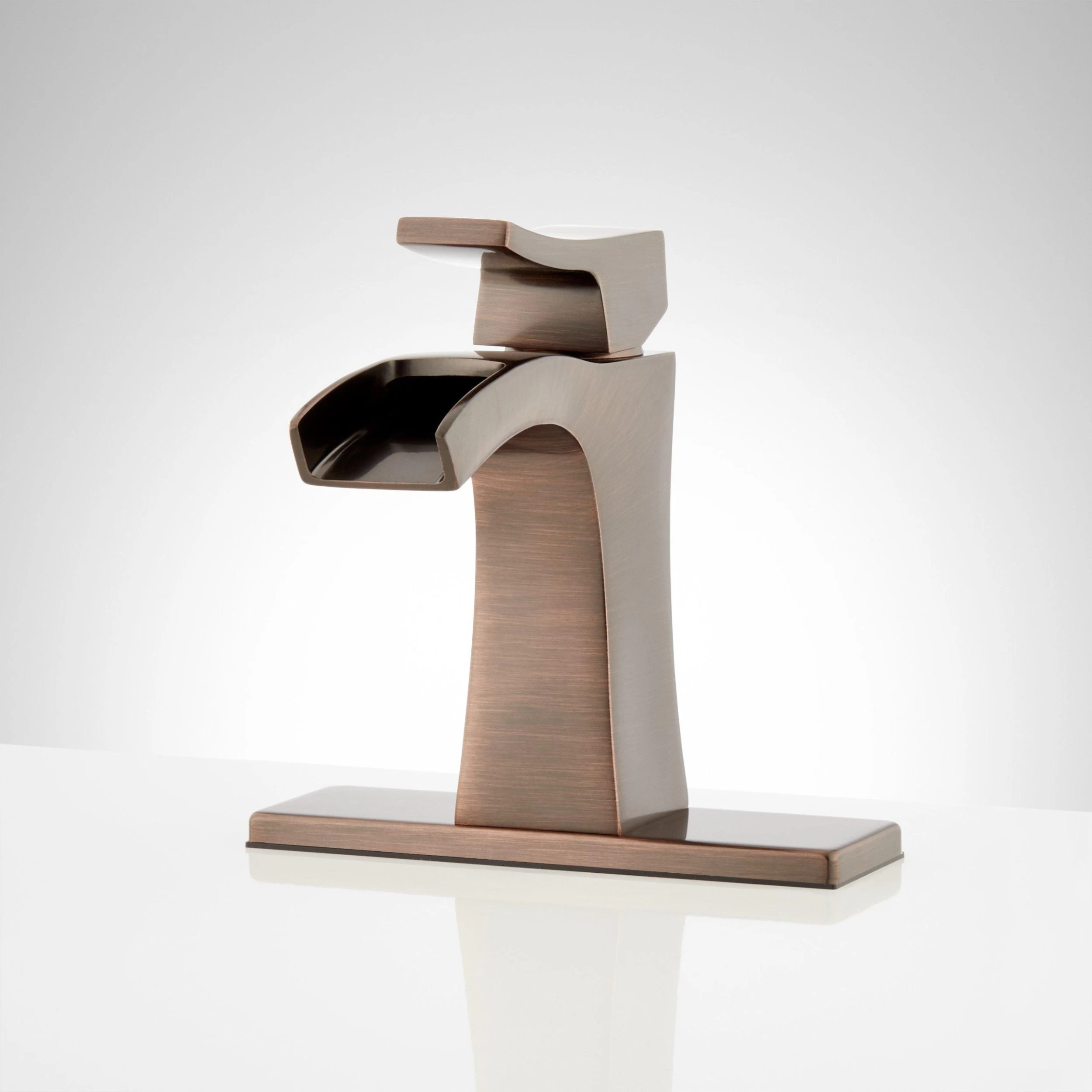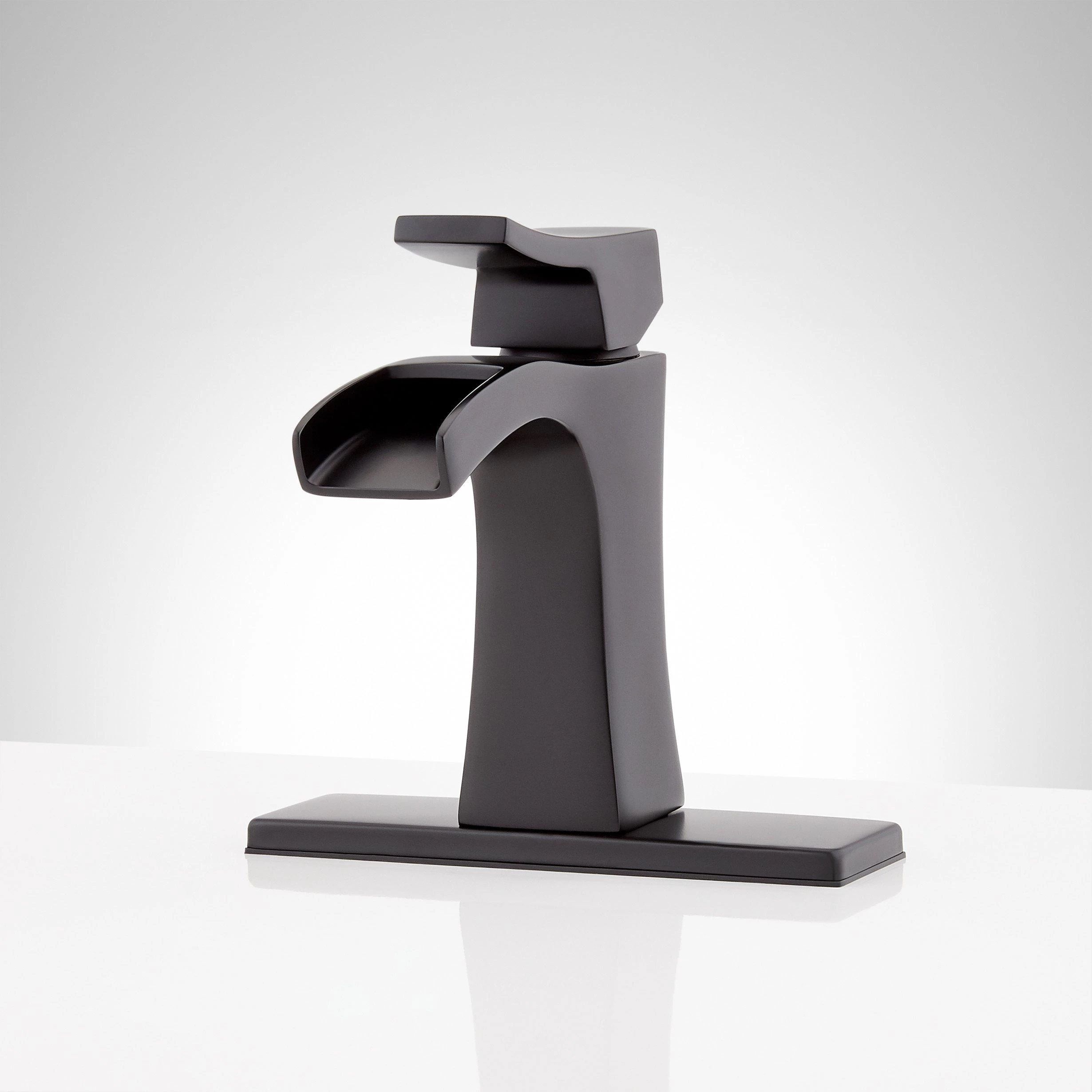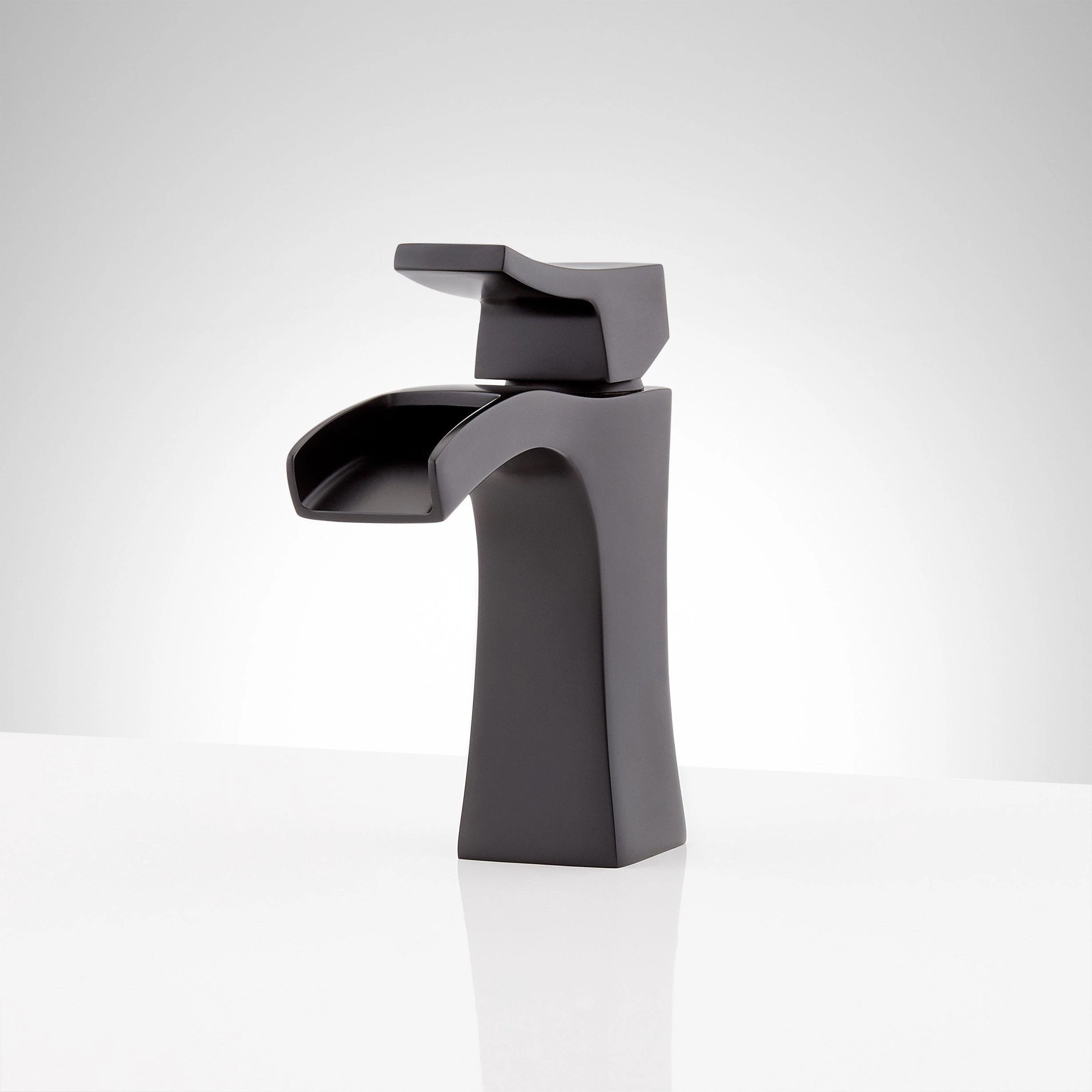 The Vilamonte Single-Hole Bathroom Faucet’s waterfall design sends water cascading into your sink. Sleek and stylish, this product perfectly complements a modern bathroom. Solid brass construction and a corrosion-resistant finish promises lasting beauty and reliability. A matching pop-up drain is included.